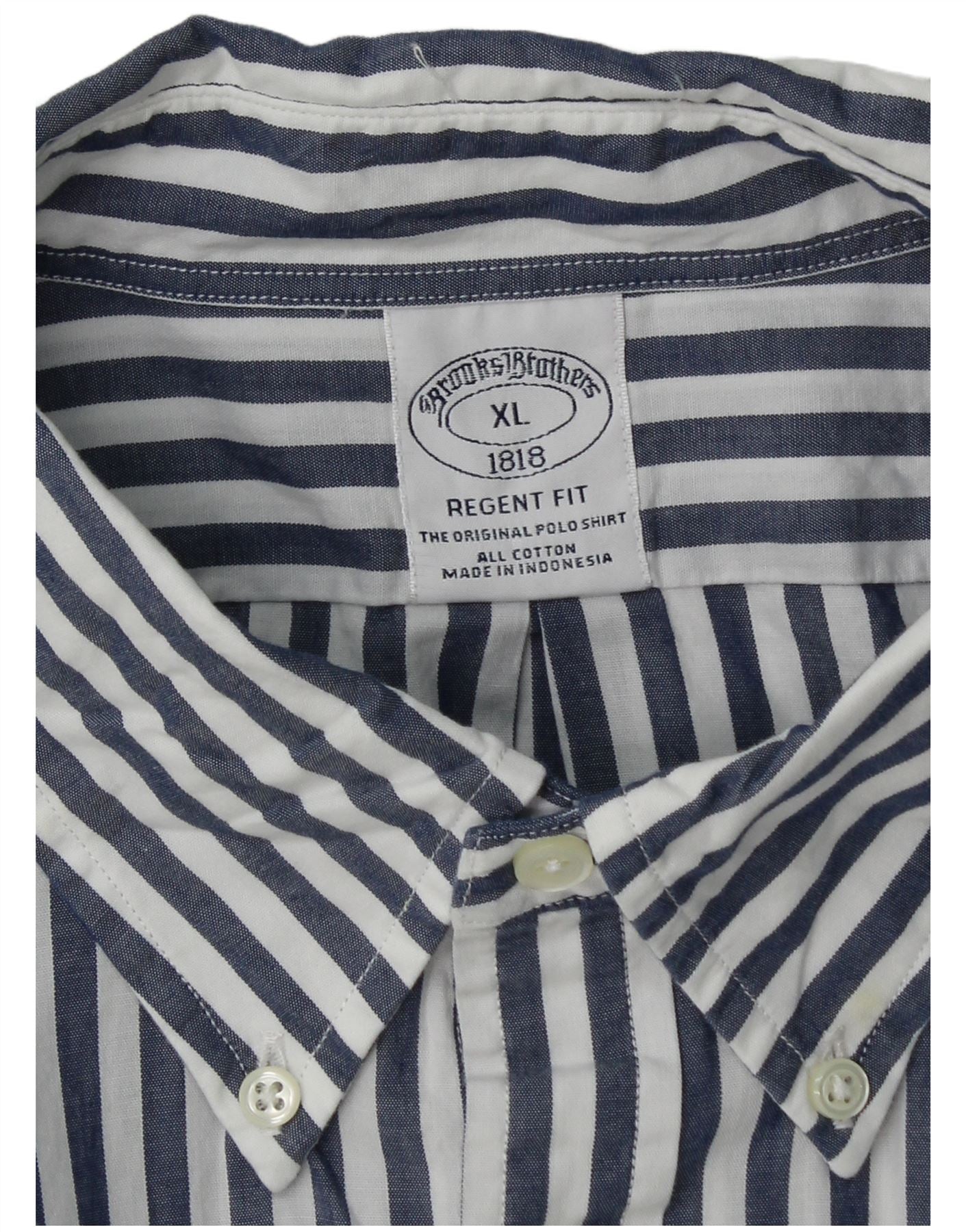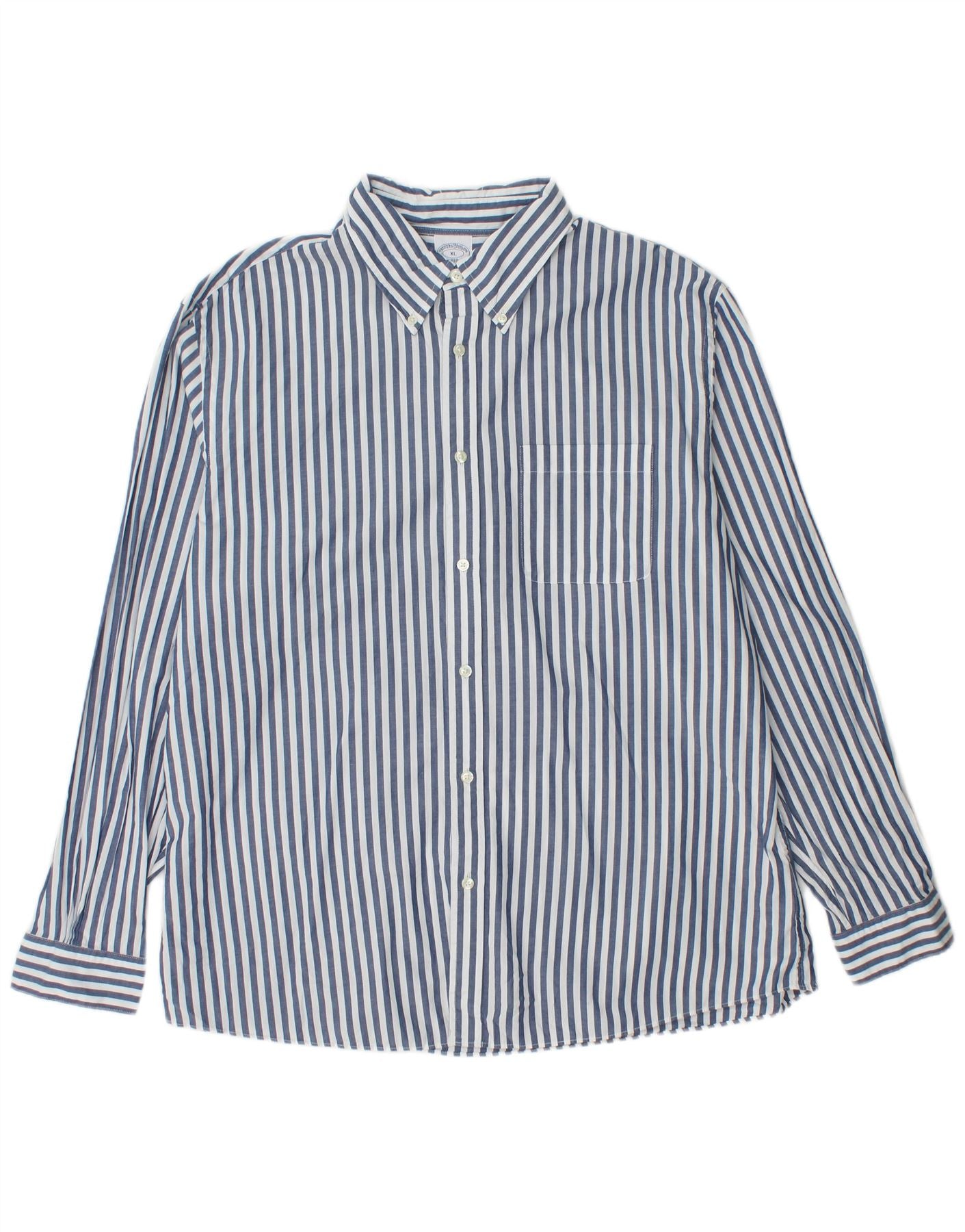 BROOKS BROTHERS Mens Regent Fit Shirt XL Navy Blue Striped Cotton