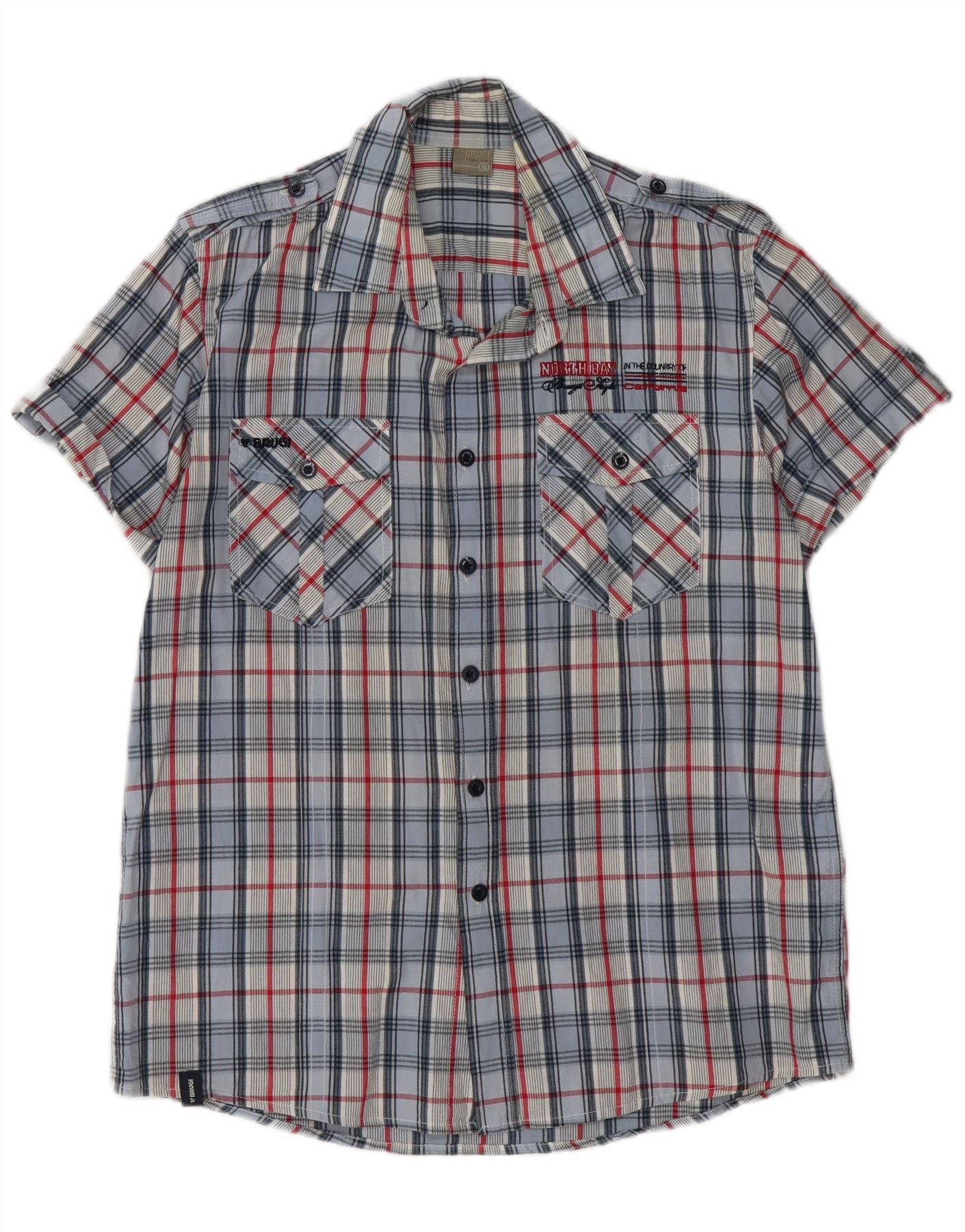 BRUGI Ανδρικό κοντομάνικο πουκάμισο XL Μπλε βαμβακερό Gingham