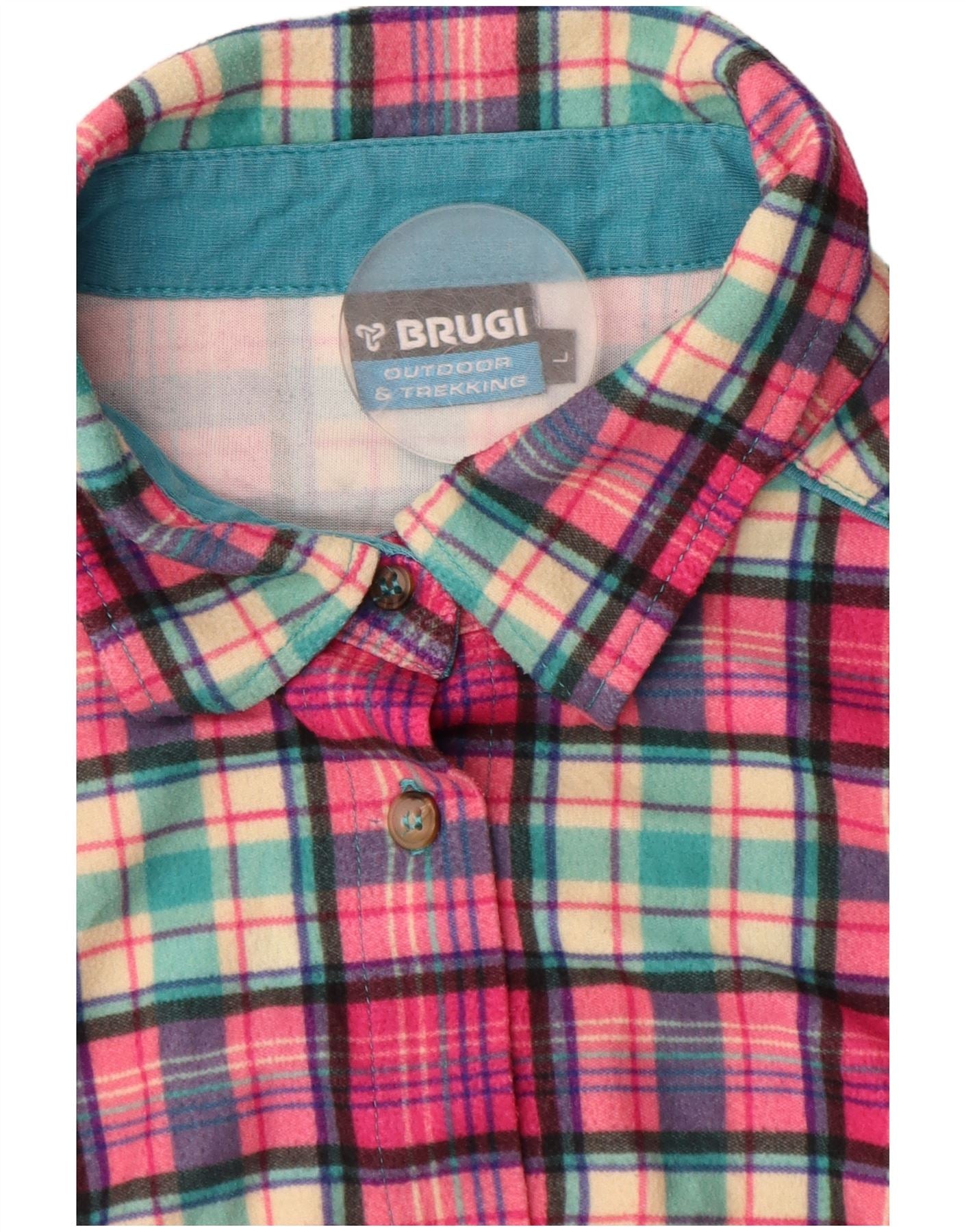 BRUGI Γυναικείο Φανελένιο Πουκάμισο UK 14 Μεγάλο Ροζ Έλεγχο