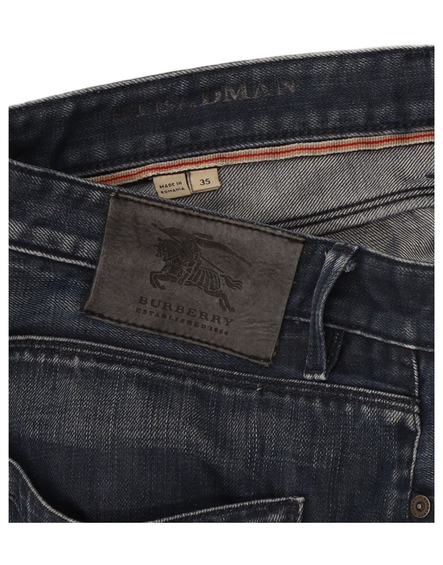 - AI Description: These Burberry womens straight jeans are crafted from blue denim, offering a classic straight leg fit. A mid rise waistband and button closure provide a secure, comfortable wear. They include practical pockets and a subtle logo accent adds a signature touch. The regular fit ensures everyday versatility and timeless style.
