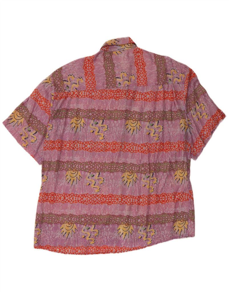 C&A Mens Abstract Pattern Short Sleeve Shirt Size 41/42 Large Purple Silk