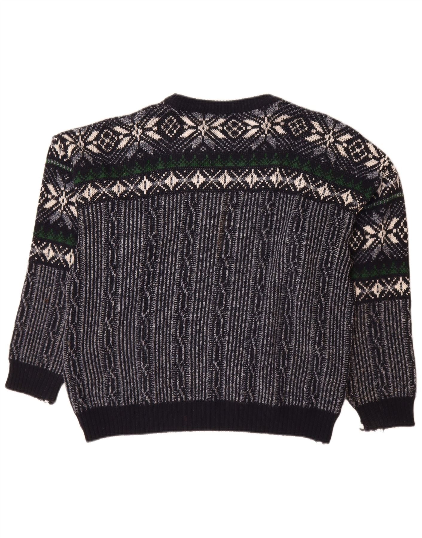 VINTAGE Ανδρικό φερμουάρ Fleece Jumper Μεγάλο Navy Blue γεωμετρικό