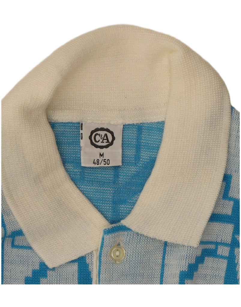 C&A Mens Polo Neck Jumper Sweater IT 48/50 Medium Blue Geometric