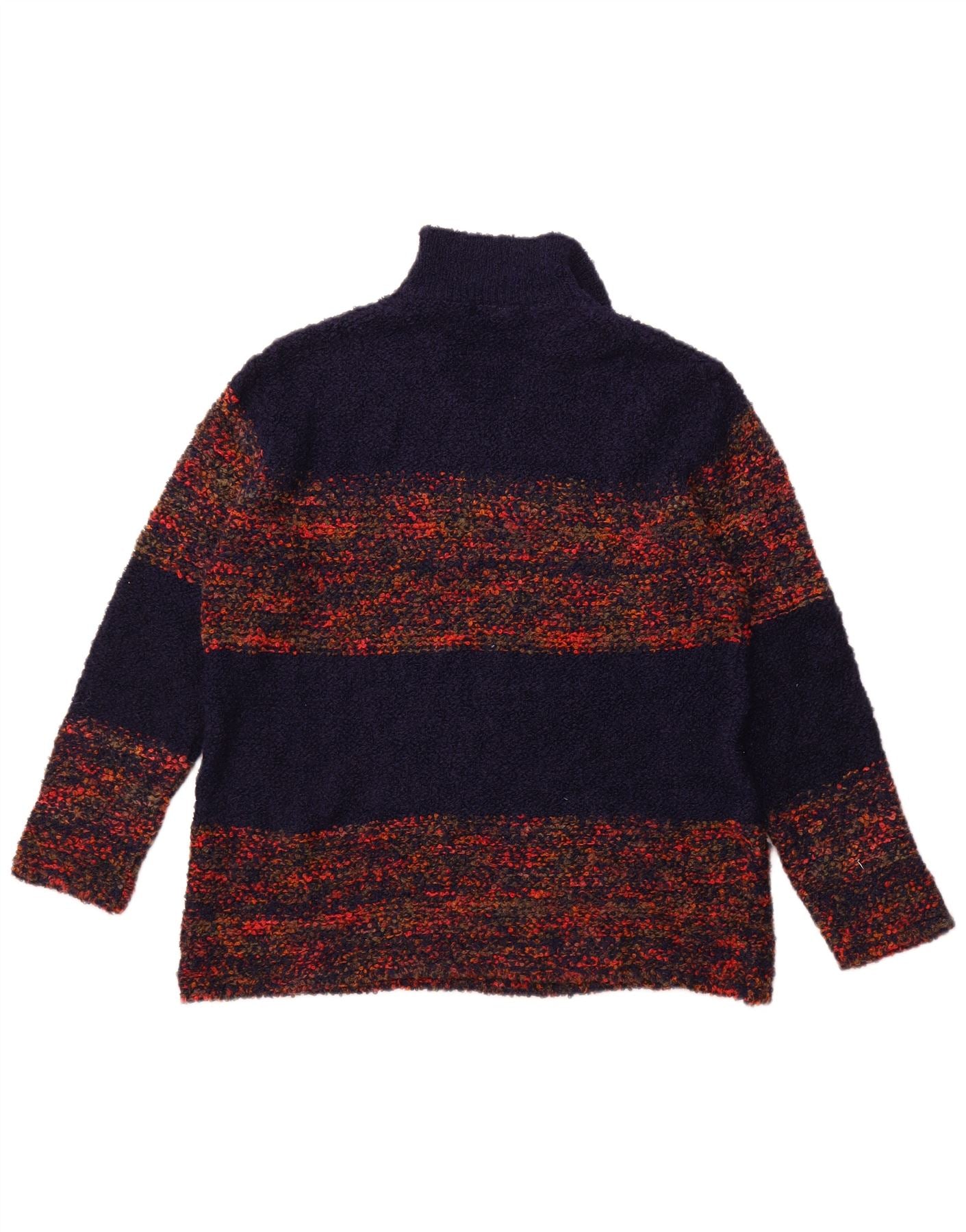 C&A Womens Polo Neck Jumper Sweater UK 18/20 XL Navy Blue Striped Acrylic
