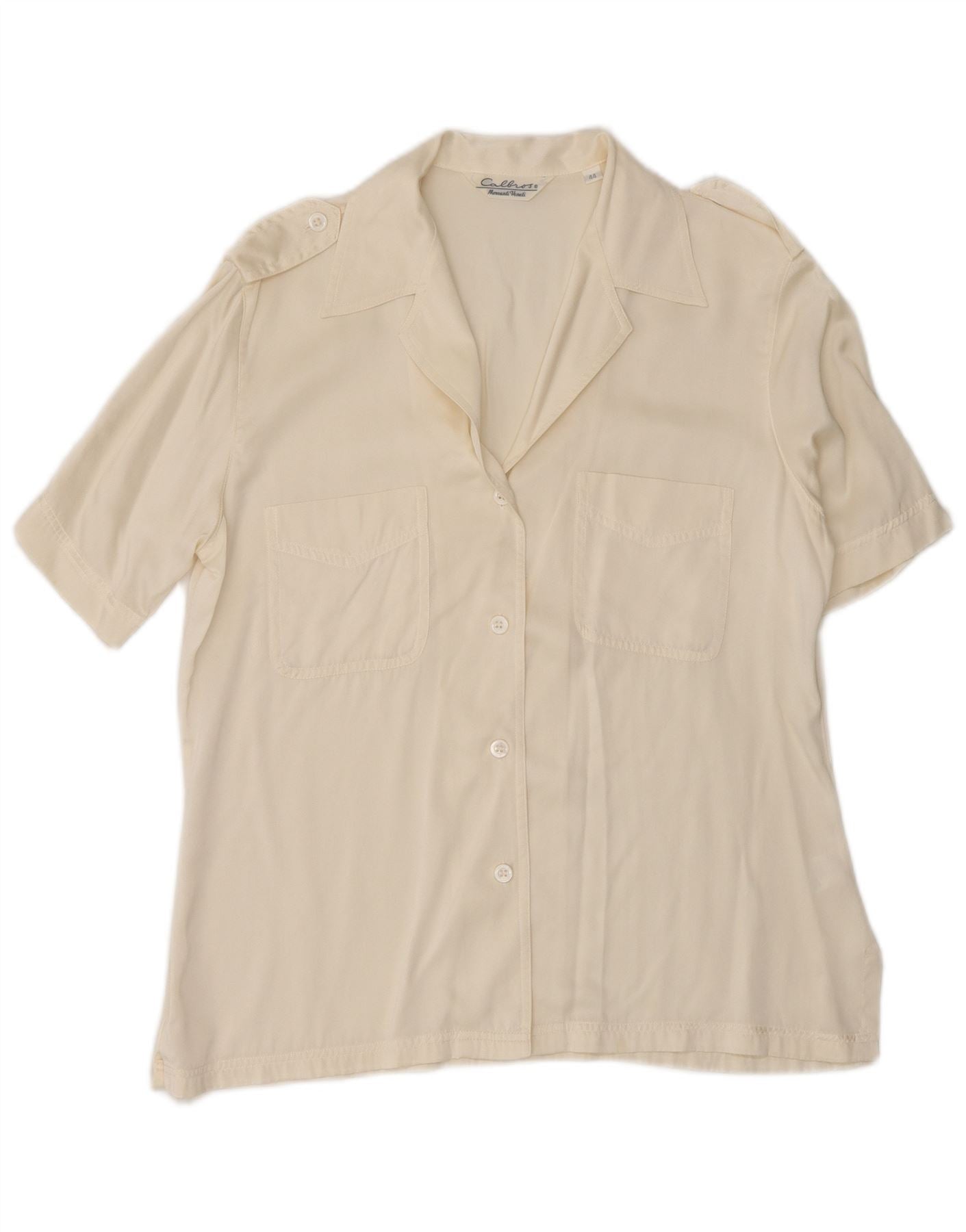CALBROS Womens Military Short Sleeve Shirt Blouse IT 44 Medium Off White