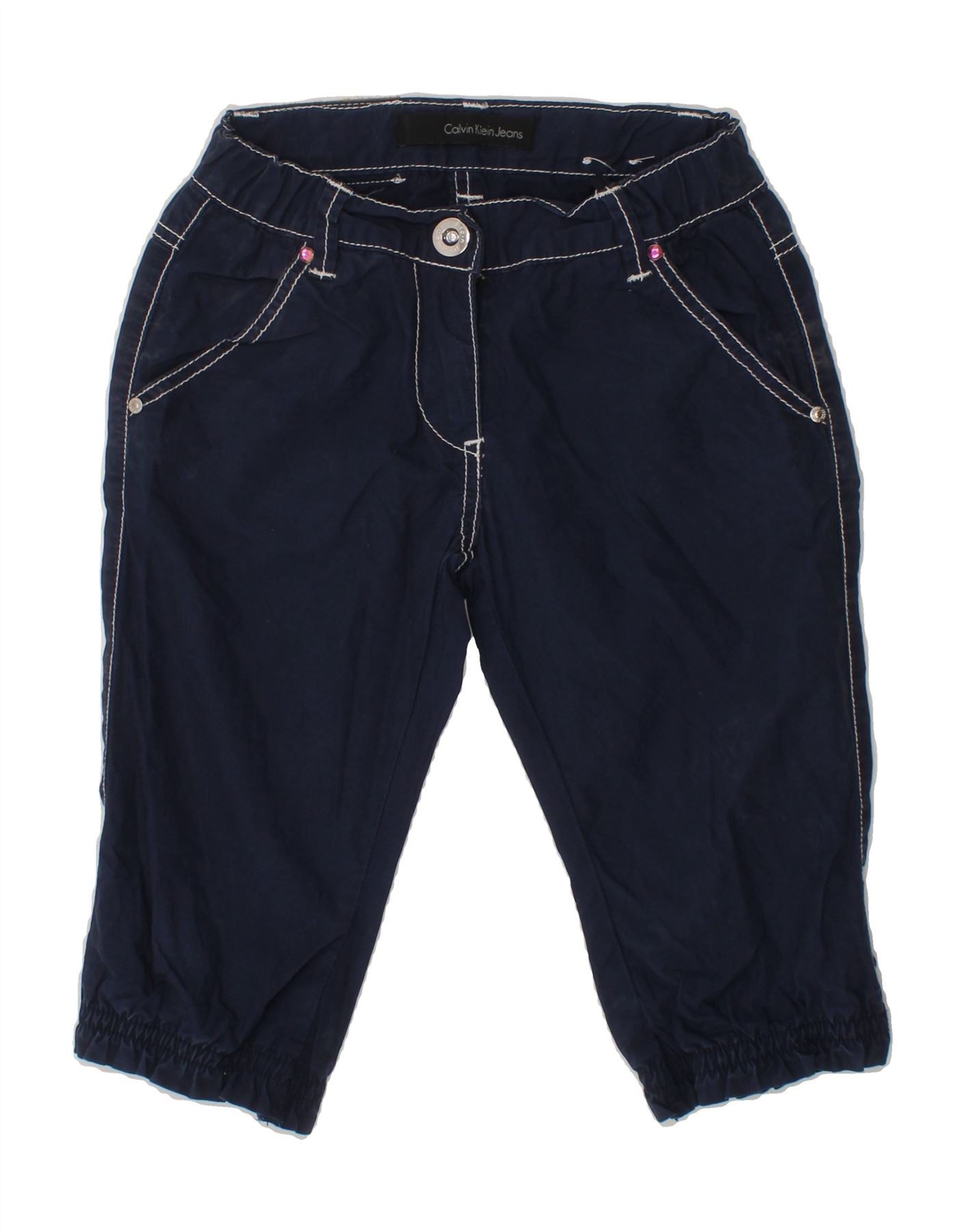 CALVIN KLEIN Girls Slim Chino Trousers 4-5 Years W18 L10 Navy Blue Cotton