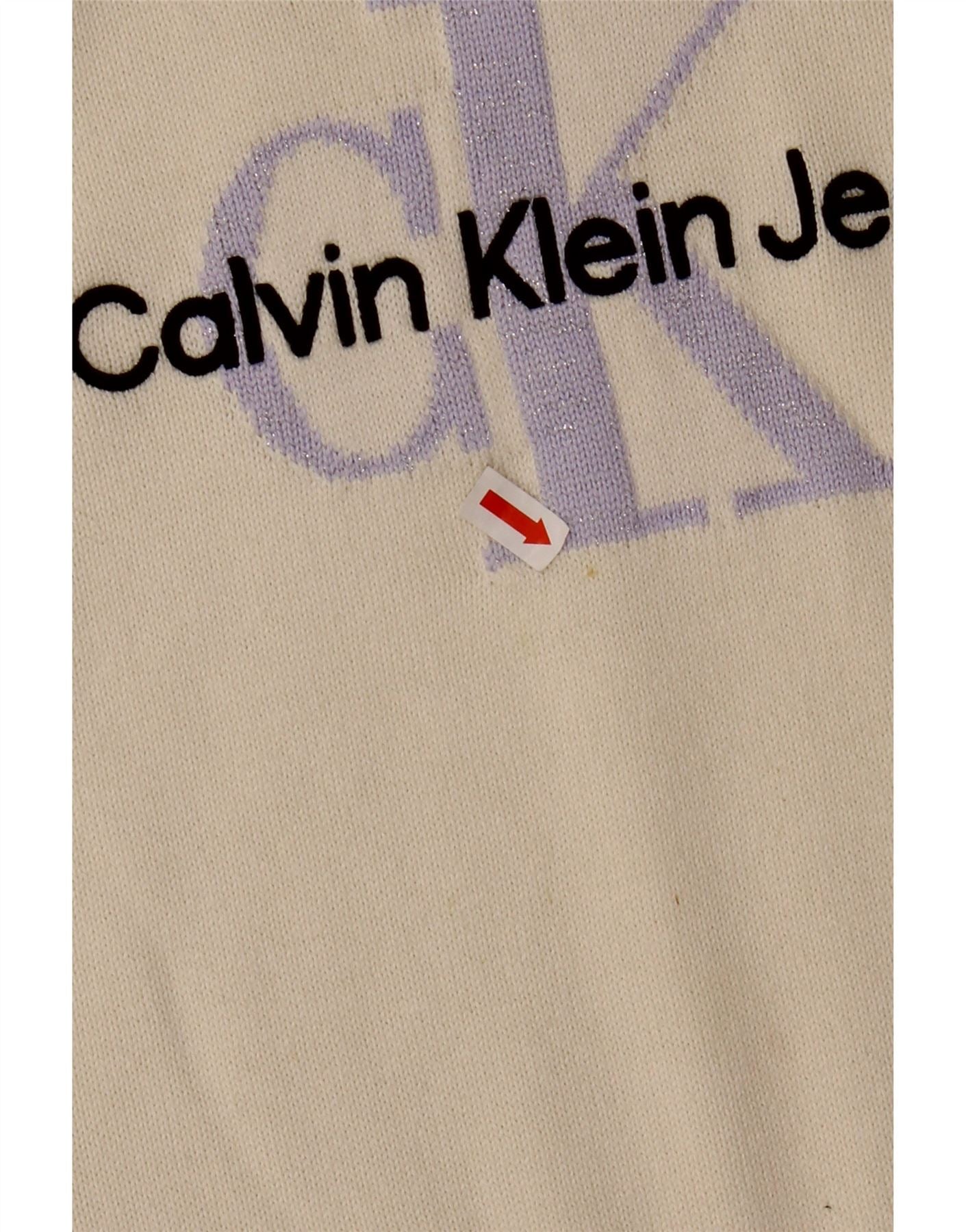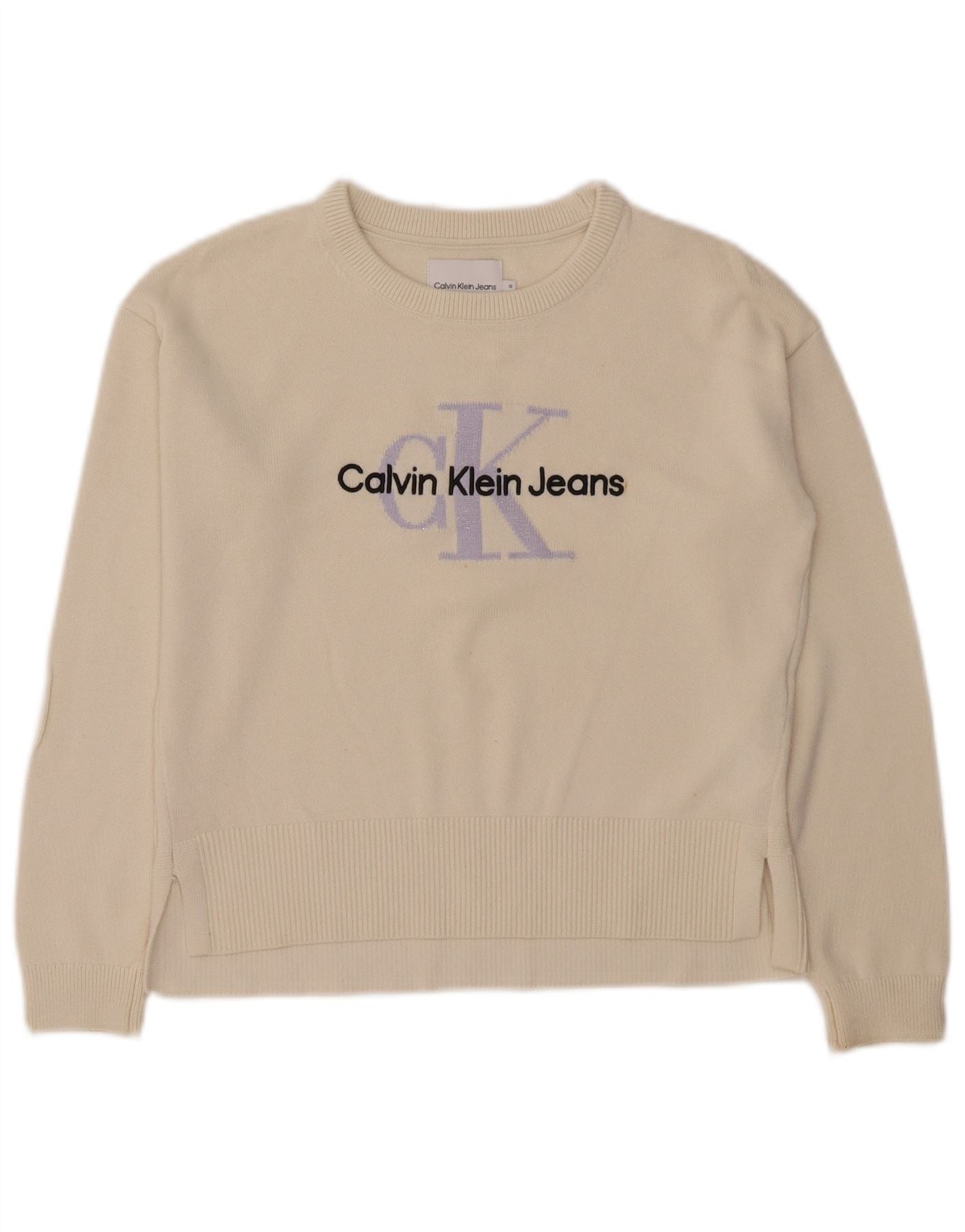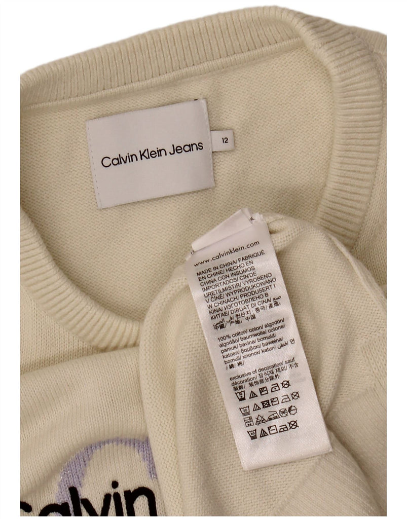 CALVIN KLEIN JEANS Girls Crew Neck Jumper Sweater 11-12 Years Off White