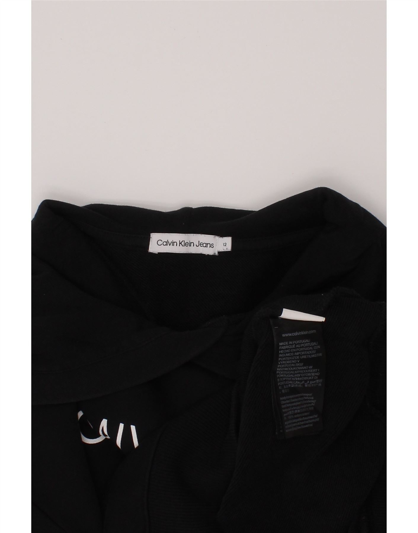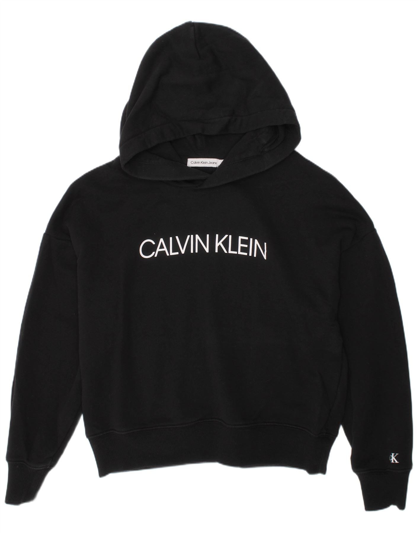 CALVIN KLEIN JEANS Girls Crop Graphic Hoodie Jumper 11-12 ετών Μαύρο