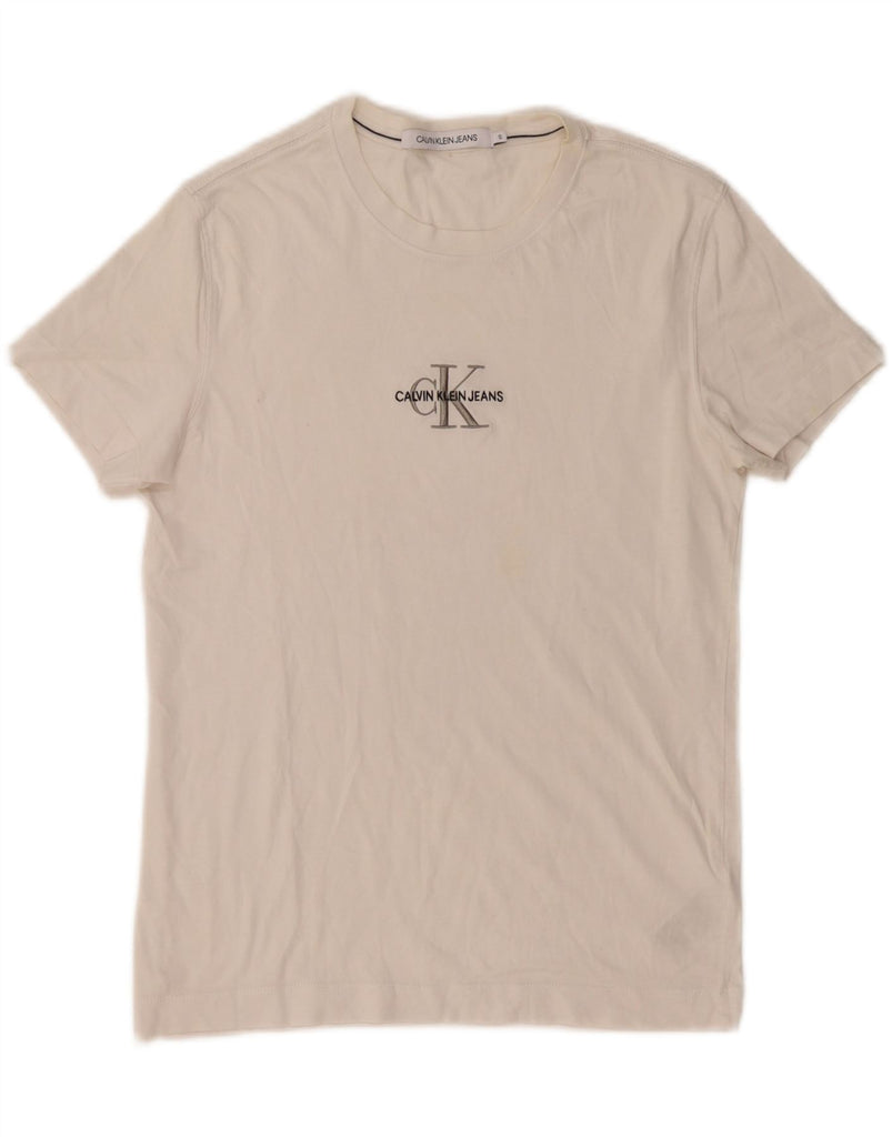 CALVIN KLEIN JEANS Mens Graphic T-Shirt Top Small White Cotton