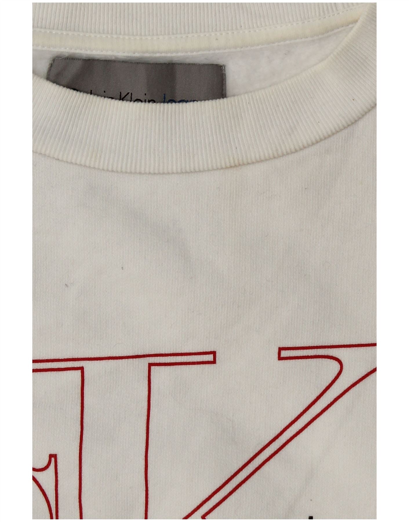CALVIN KLEIN JEANS Γυναικείο Crop γραφικό φούτερ Jumper UK 6 XS Λευκό