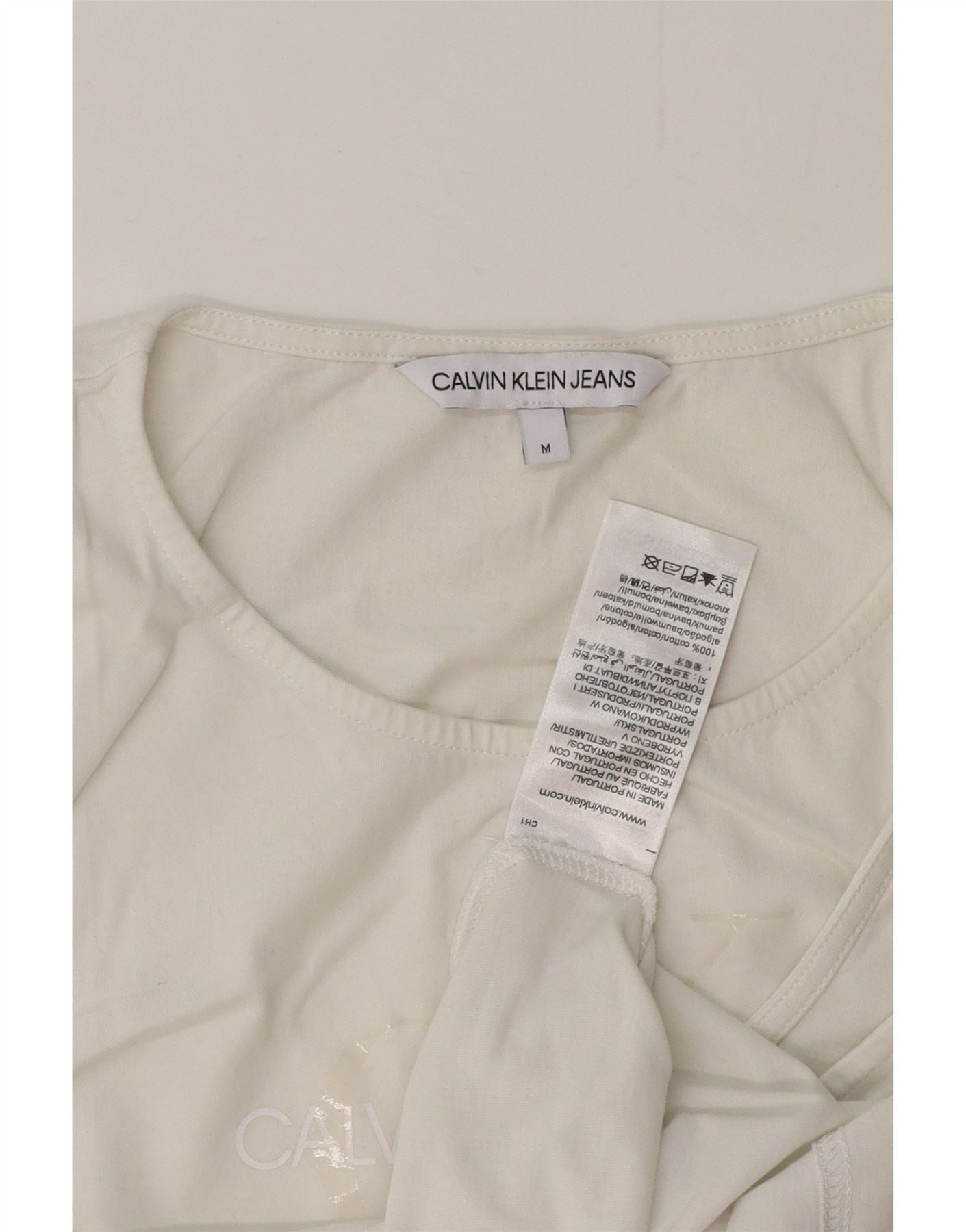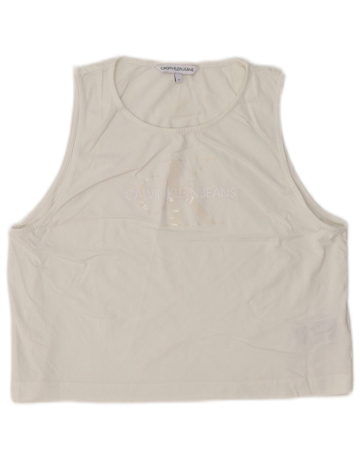 Calvin Klein Jeans Γυναικείο Crop γραφικό γιλέκο UK 12 μεσαίο λευκό βαμβακερό