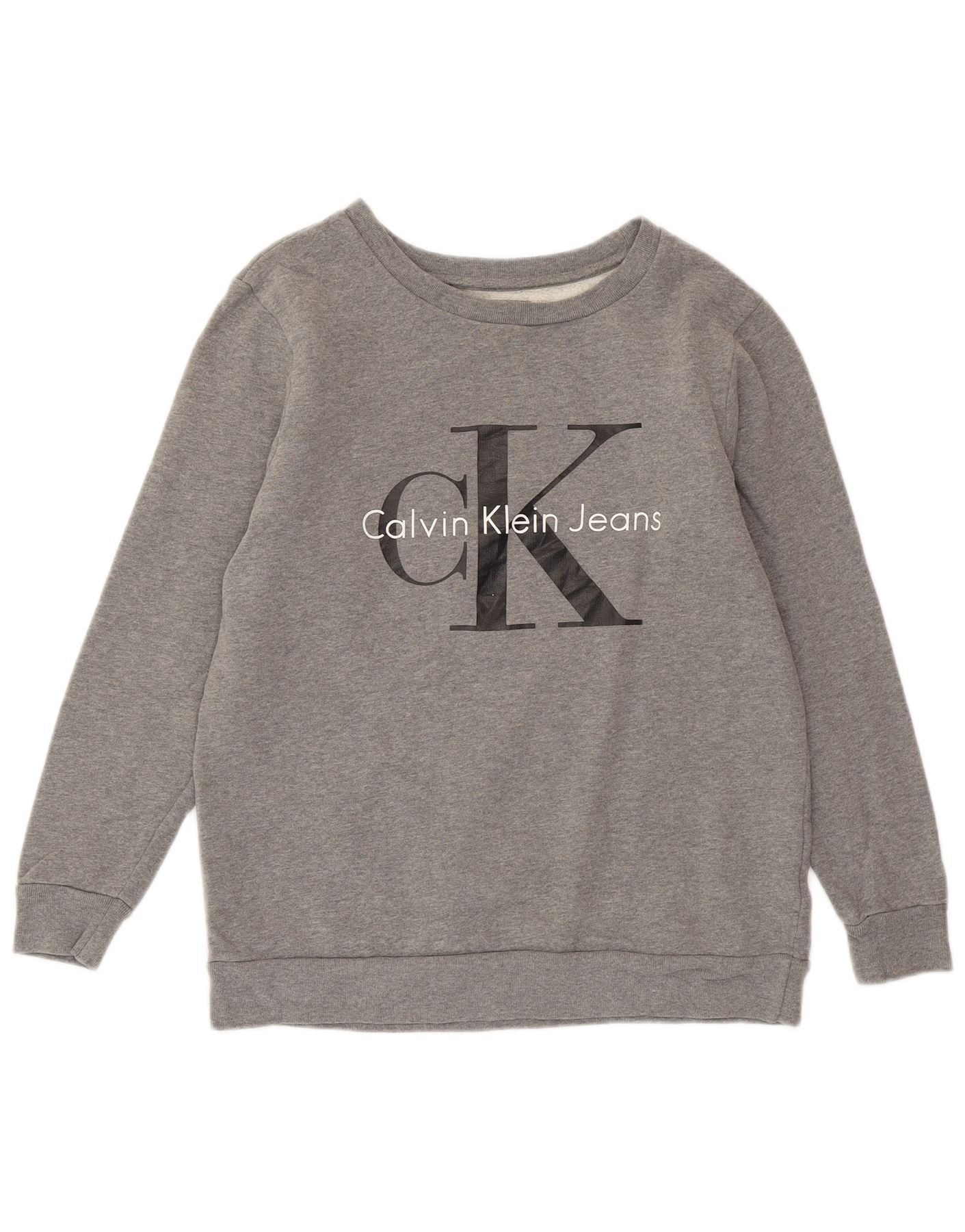 CALVIN KLEIN JEANS Γυναικείο φούτερ μεγάλου μεγέθους Jumper UK 6 XS με γκρι φλιτζάνια