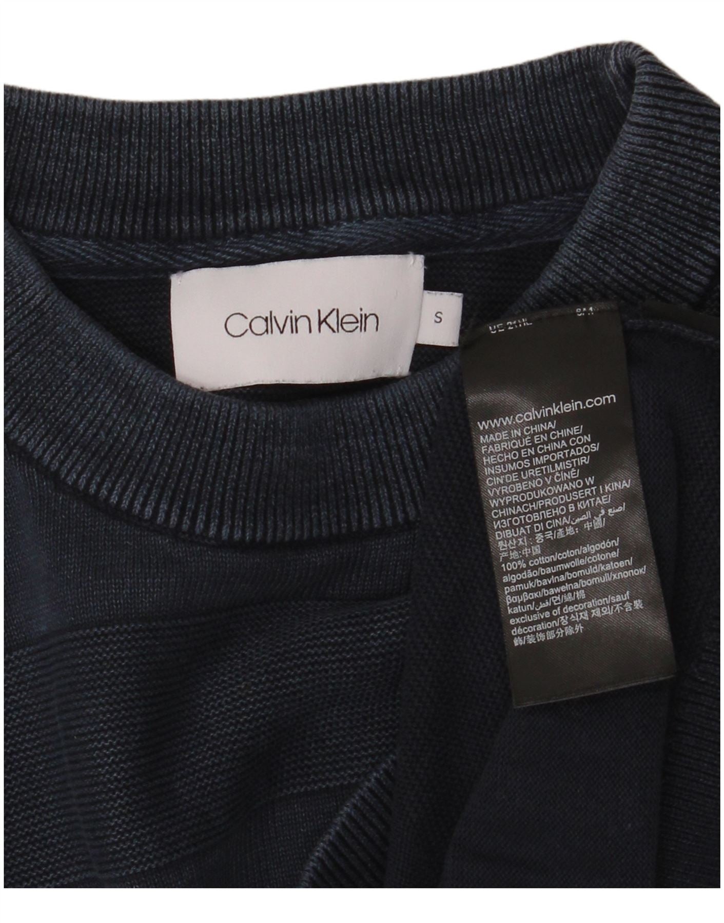 CALVIN KLEIN Ανδρικό πουλόβερ με λαιμόκοψη με λαιμόκοψη μικρό, μπλε ναυτικό, βαμβακερό ριγέ