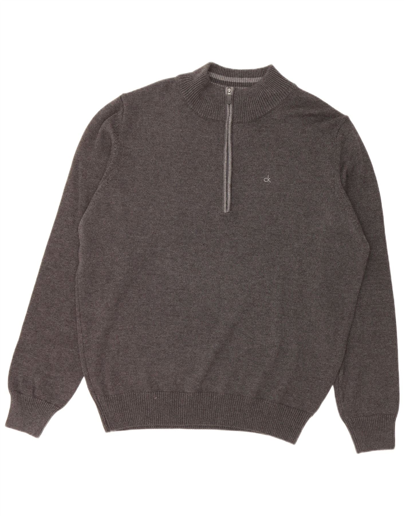 CALVIN KLEIN Ανδρικό πουλόβερ με φερμουάρ γκολφ 2XL γκρι βαμβακερό