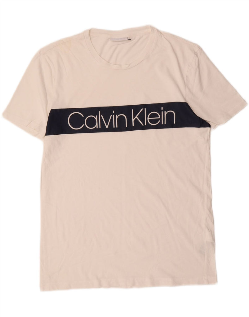 Ανδρικό γραφικό μπλουζάκι CALVIN KLEIN Τοπ μεσαίο λευκό βαμβακερό χρώμα