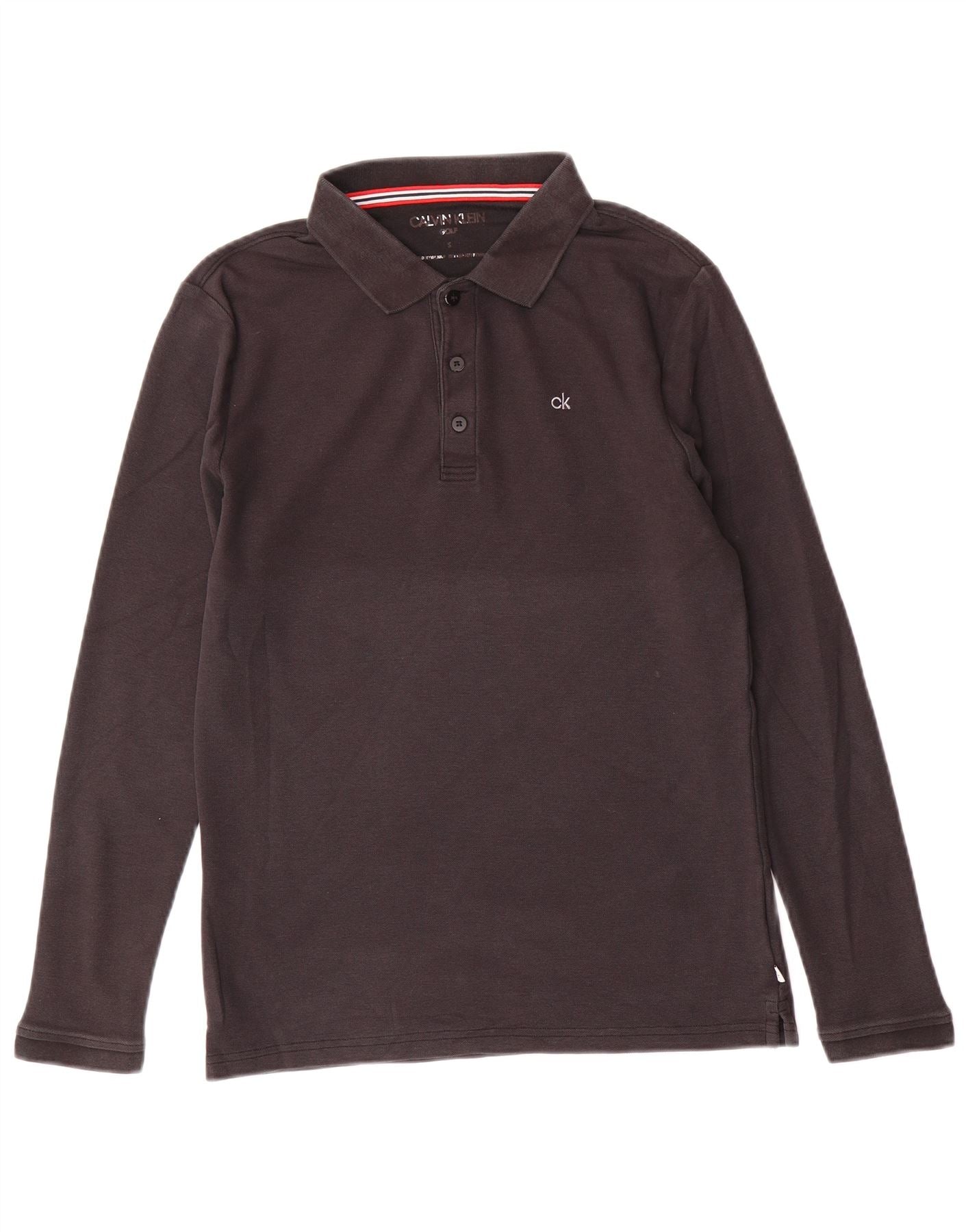CALVIN KLEIN Ανδρικό μακρυμάνικο μπλουζάκι πόλο, μικρό μαύρο βαμβακερό