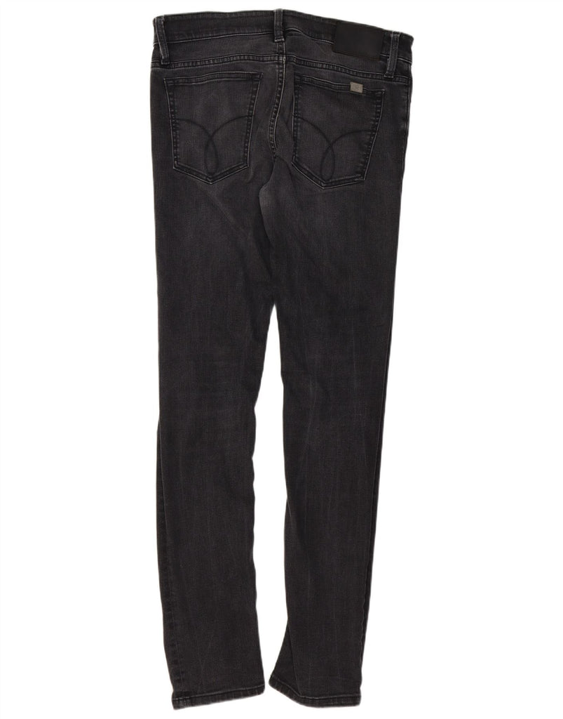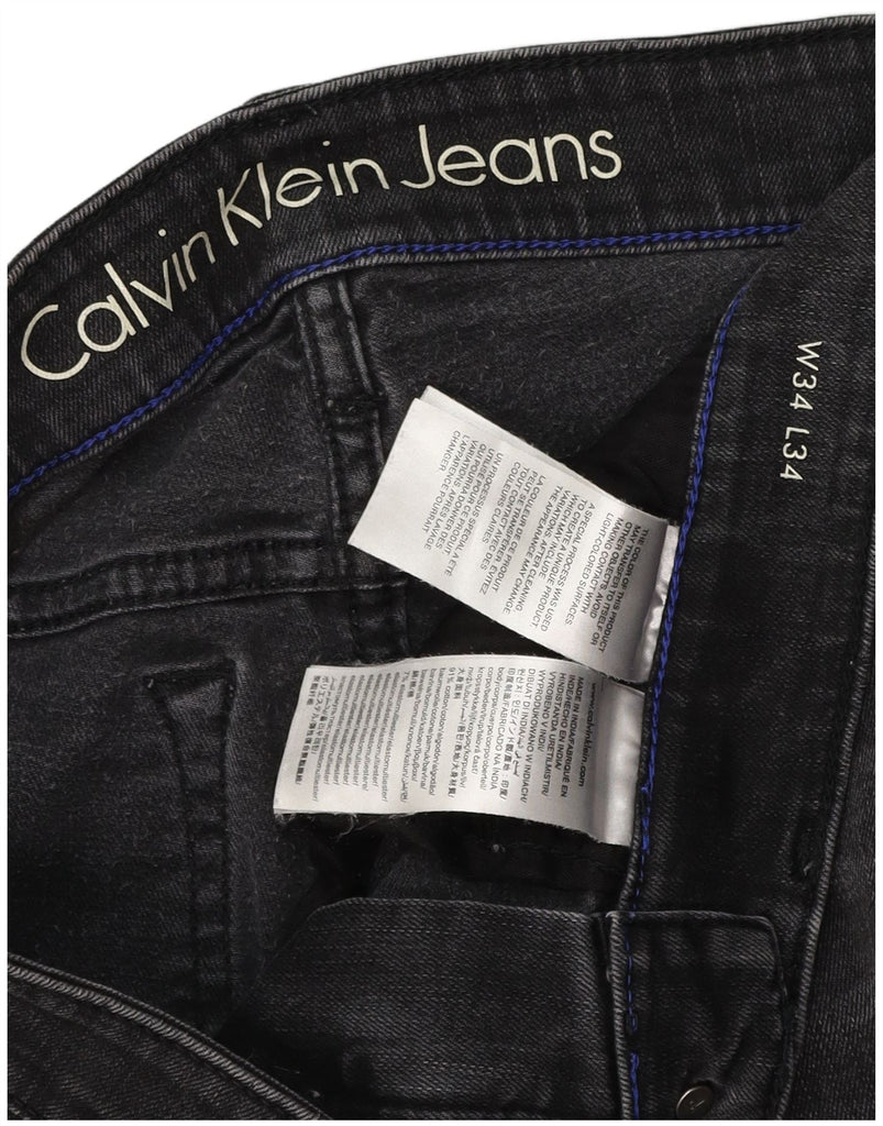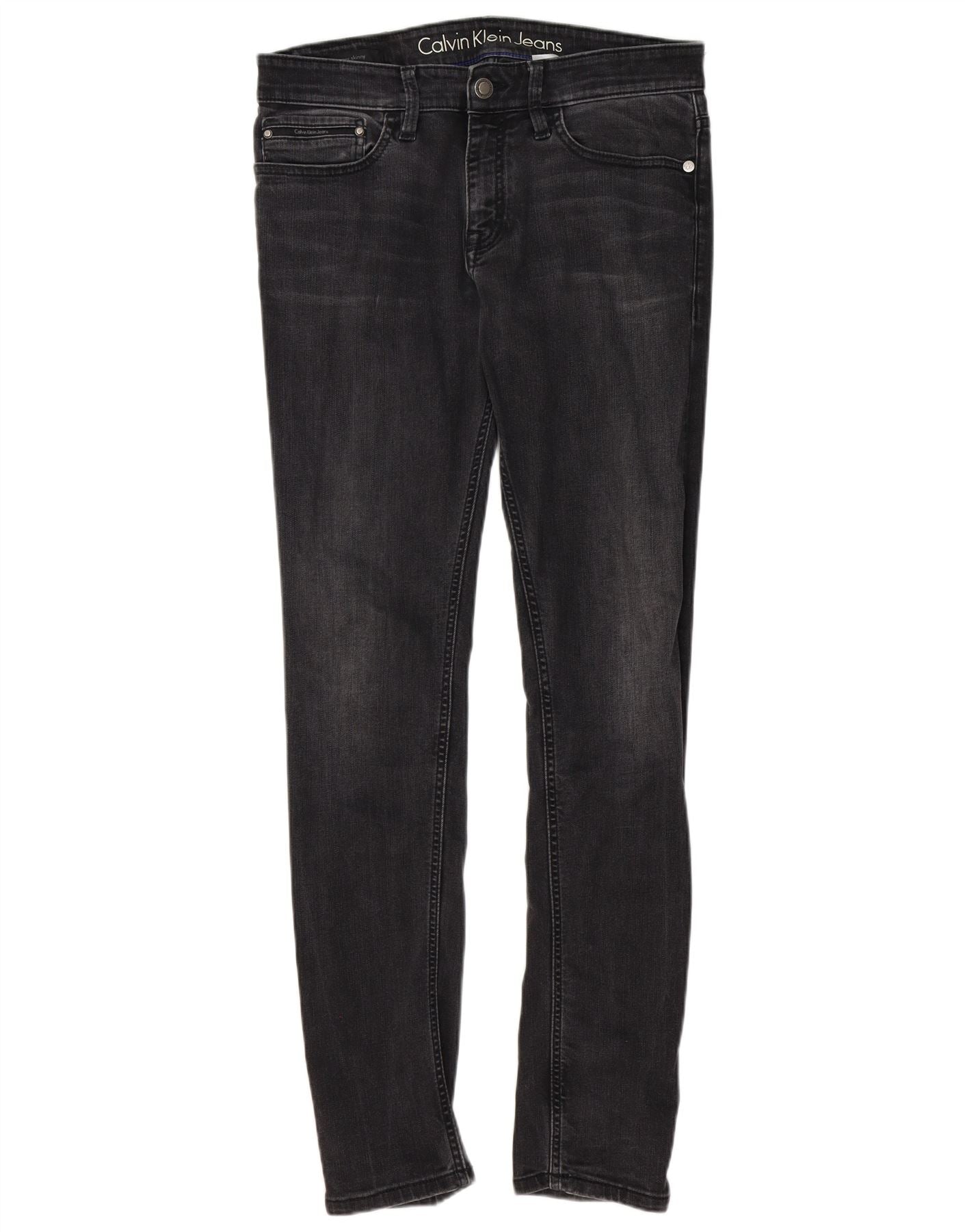 - AI Description: These Calvin Klein Jeans men's skinny jeans are crafted from black stretch denim. The low waist and button closure create a sleek profile. Their skinny fit ensures a modern, streamlined silhouette. Tapered legs narrow towards the ankle. Classic five-pocket styling offers practicality. A subtle logo accent adds signature branding.