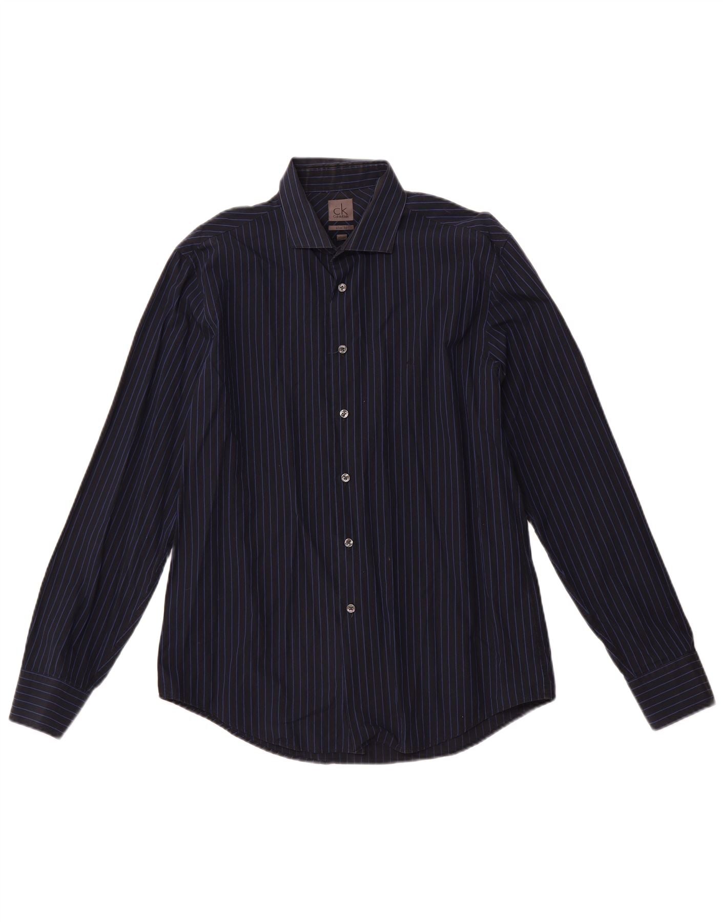 CALVIN KLEIN Ανδρικό πουκάμισο Slim Fit Μέγεθος 16 41 Μεγάλο μπλε ριγέ βαμβακερό