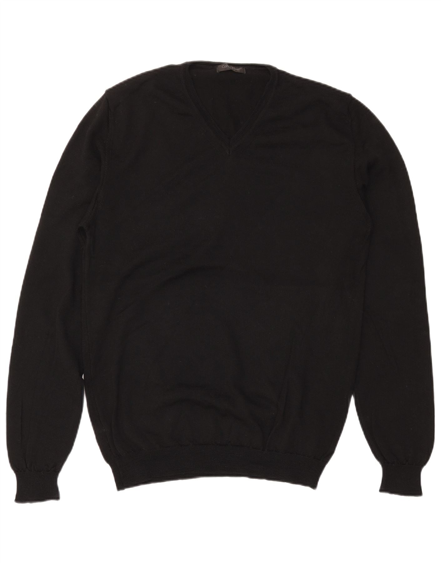 CALVIN KLEIN Ανδρικό πουλόβερ με λαιμόκοψη με λαιμόκοψη μεγάλο μαύρο μάλλινο