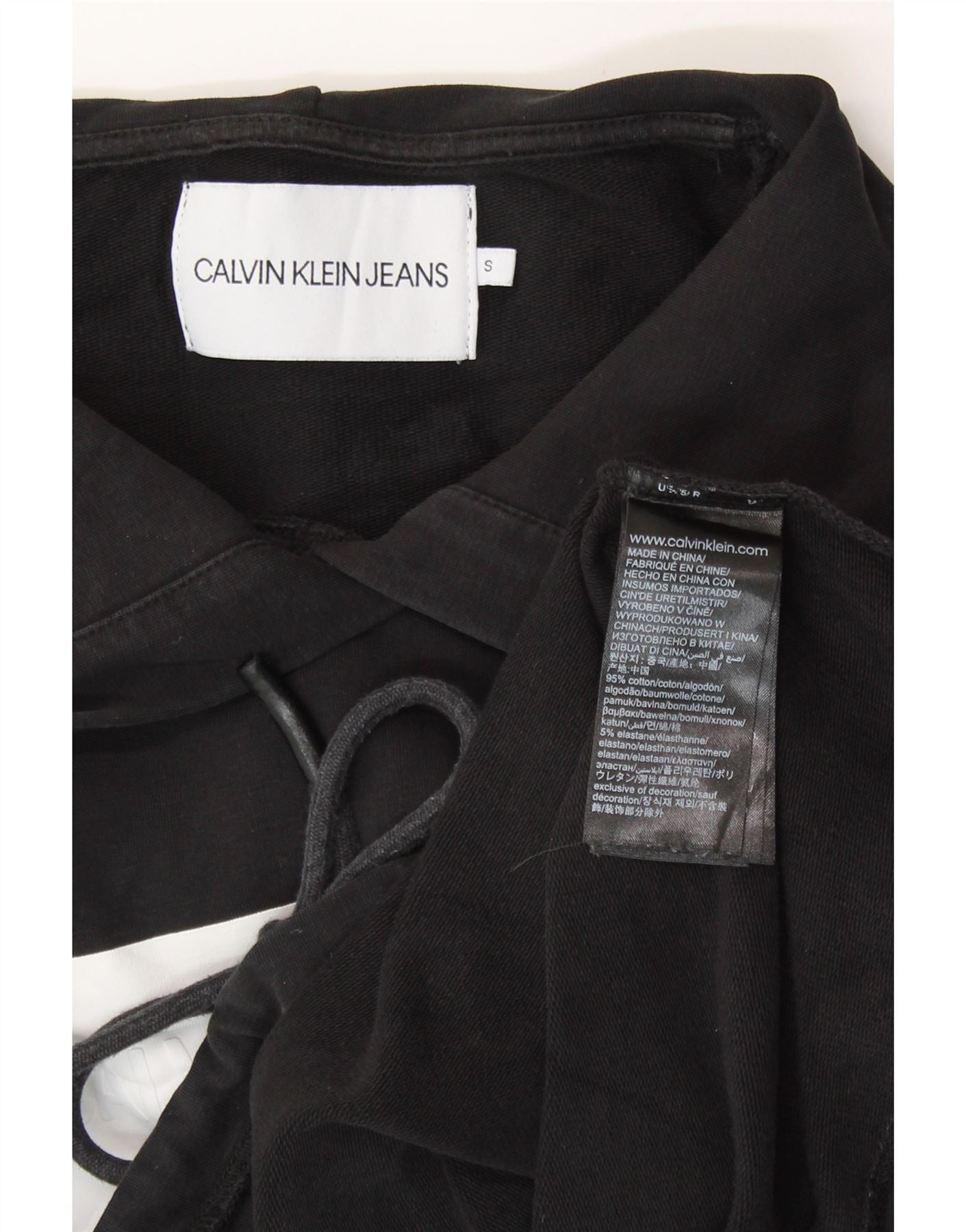 CALVIN KLEIN Γυναικείο Crop Graphic Hoodie Jumper UK 10 Small Black