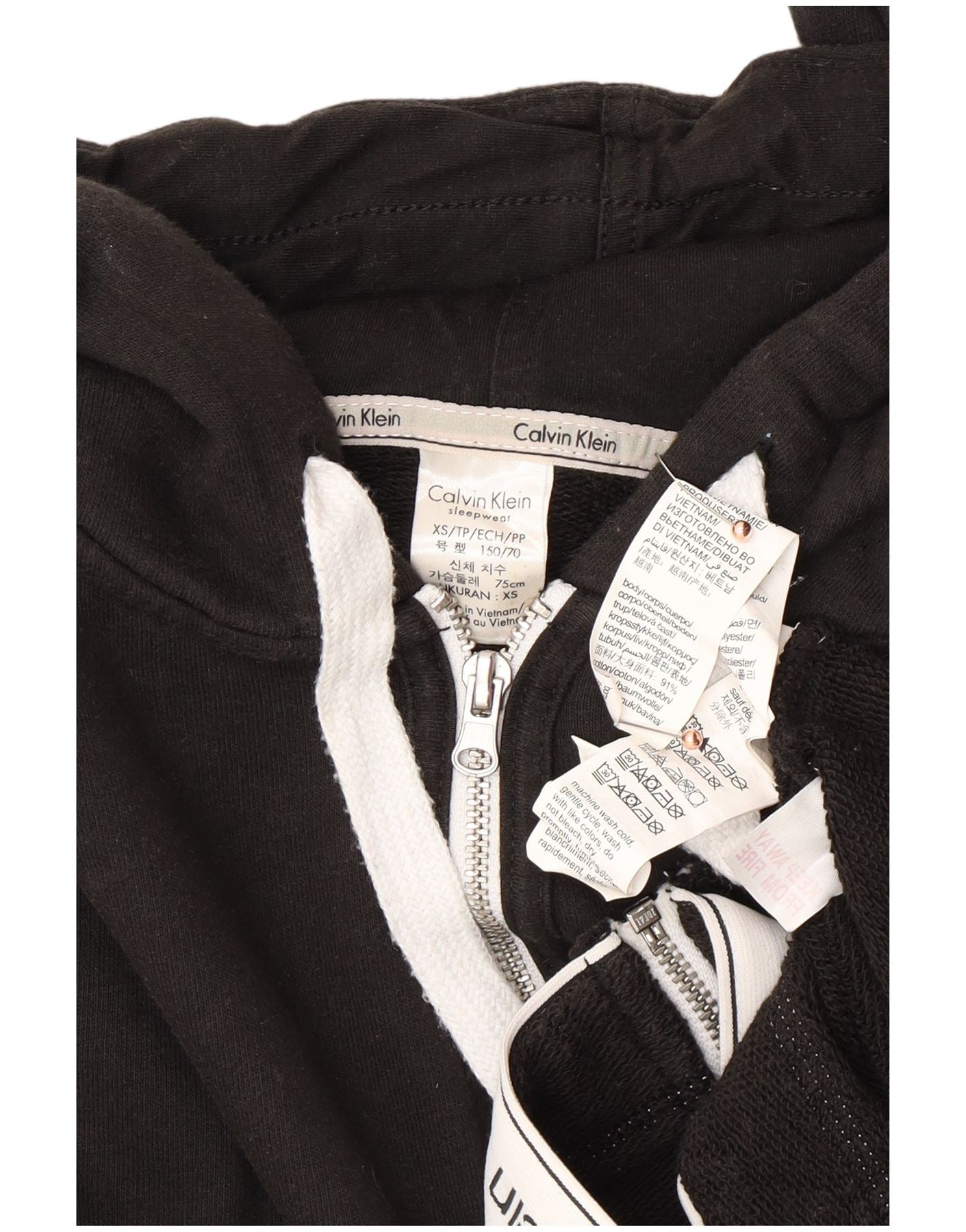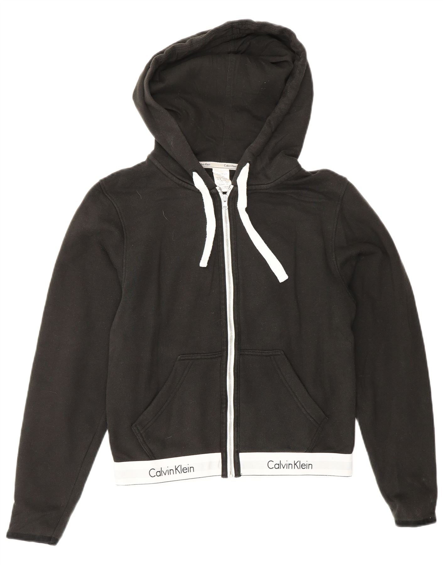 CALVIN KLEIN Γυναικείο πουλόβερ με κουκούλα με φερμουάρ UK 6 XS μαύρο χρώμα