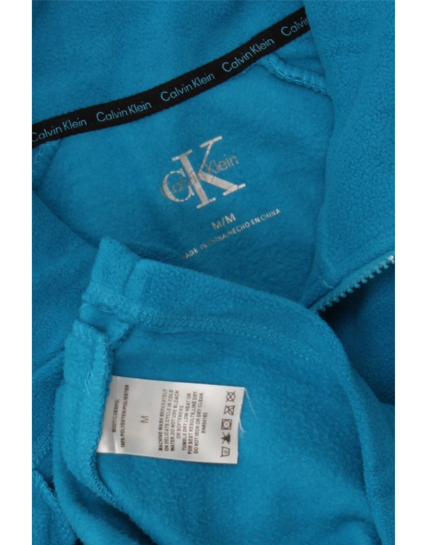 CALVIN KLEIN Womens Graphic Fleece Jacket UK 14 Medium Blue Polyester