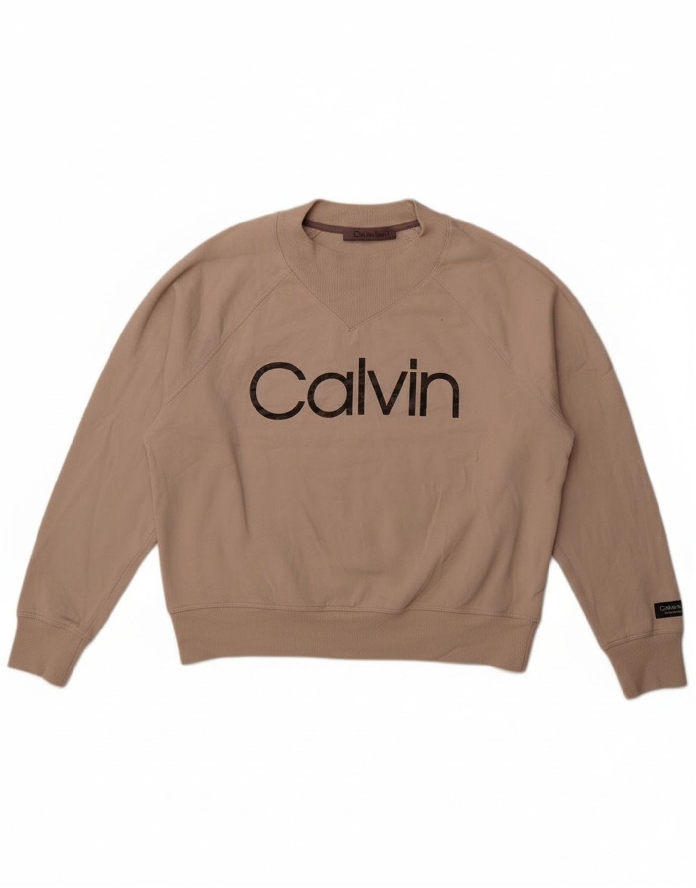 Home > Γυναικεία > Ρούχα Depop > Γυναικείο γραφικό φούτερ Calvin Klein Jumper UK 16 μεγάλο μπεζ βαμβακερό