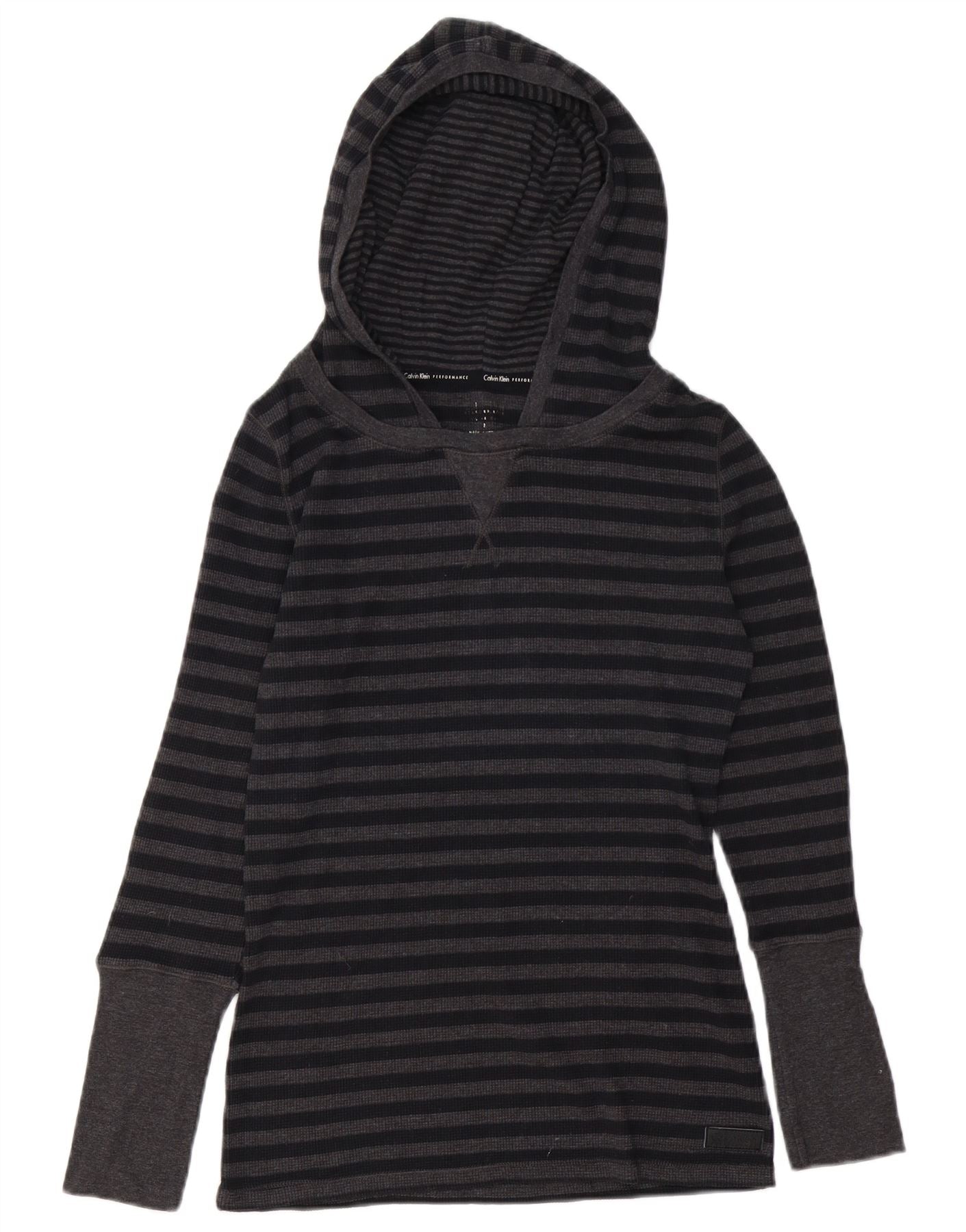 Γυναικείο Calvin Klein με κουκούλα μακρυμάνικο UK 12 μεσαίο γκρι βαμβακερό ριγέ