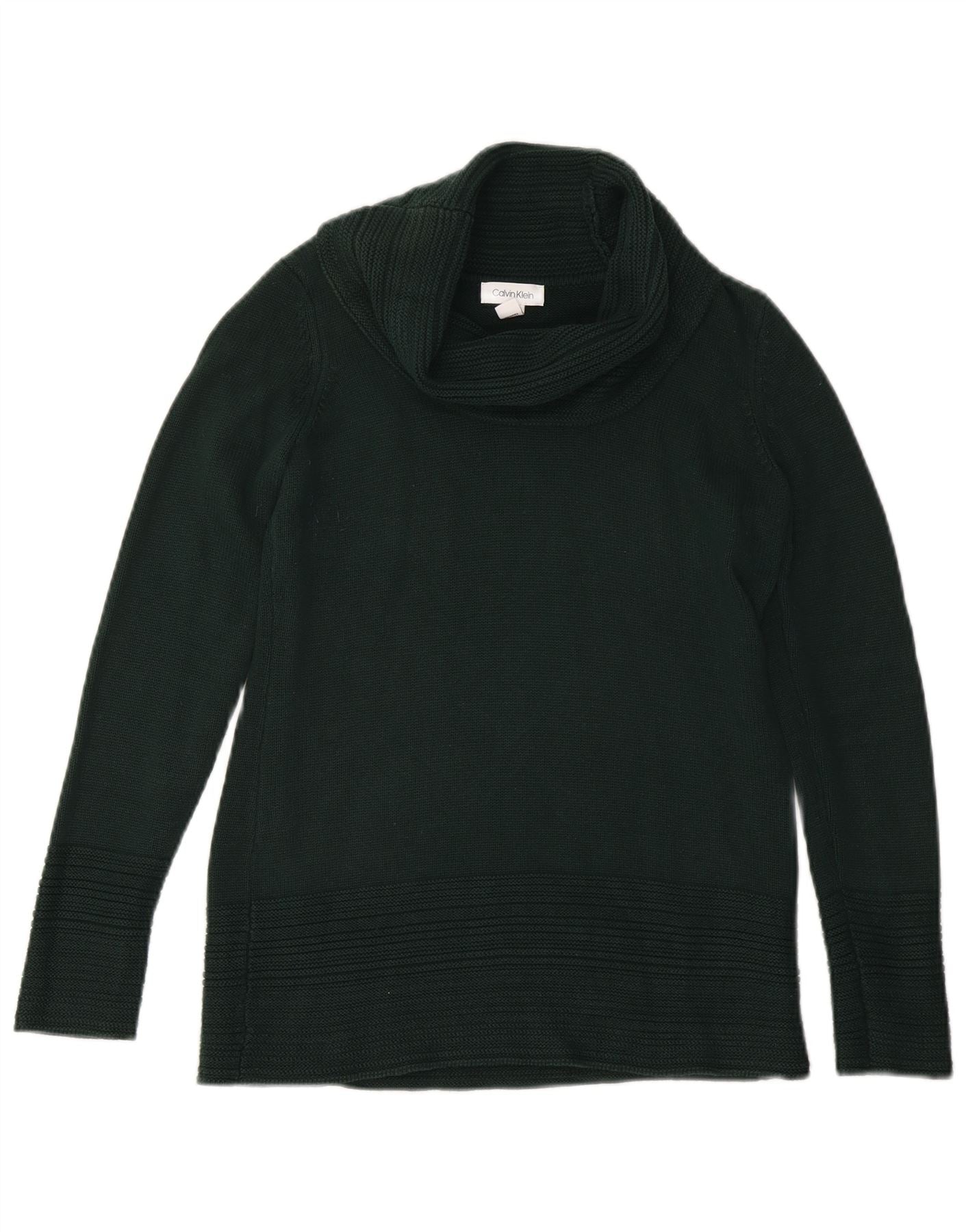 CALVIN KLEIN Γυναικείο πουλόβερ με ρολό λαιμόκοψη UK 10 μικρό βαμβακερό πράσινο