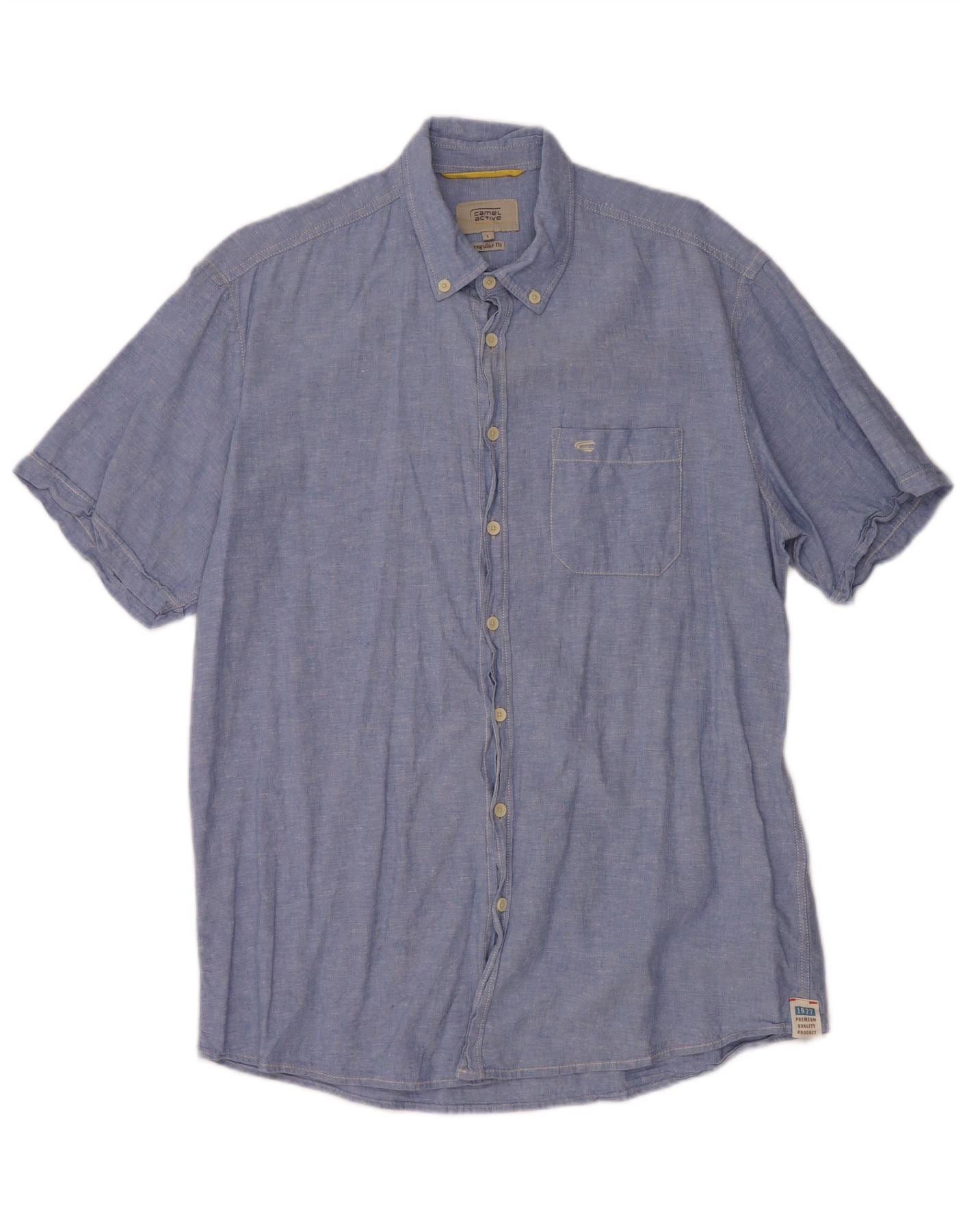 CAMEL ACTIVE Ανδρικό κοντομάνικο πουκάμισο με κανονική εφαρμογή, μεγάλο μπλε λινό