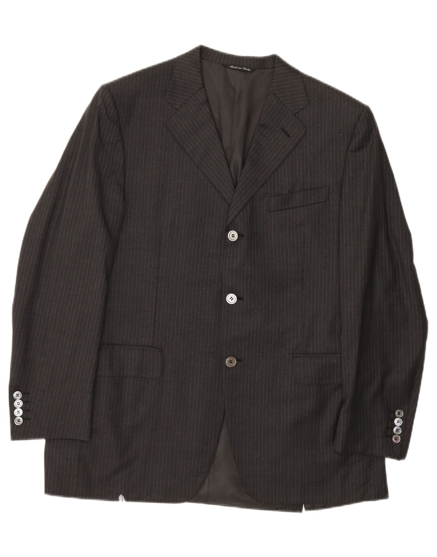 CANALI Mens 3 Button 2 Piece Suit IT 52 XL W34 L31 Black Pinstripe Rayon