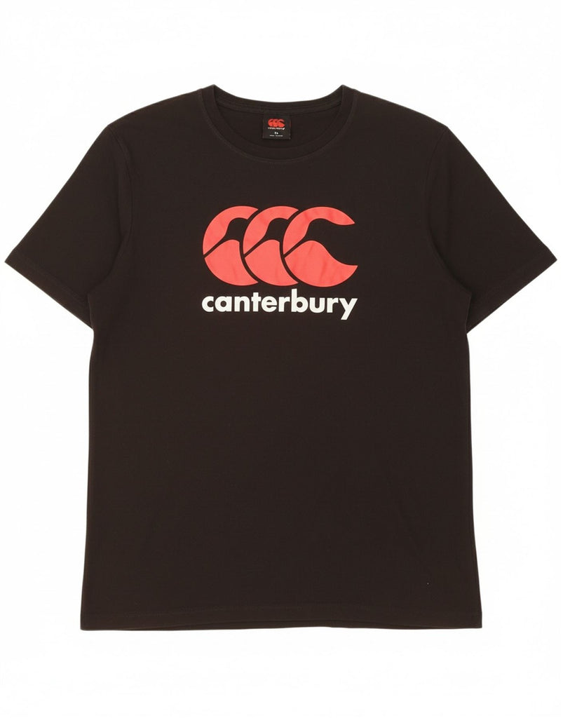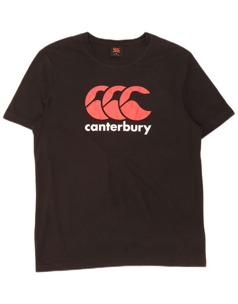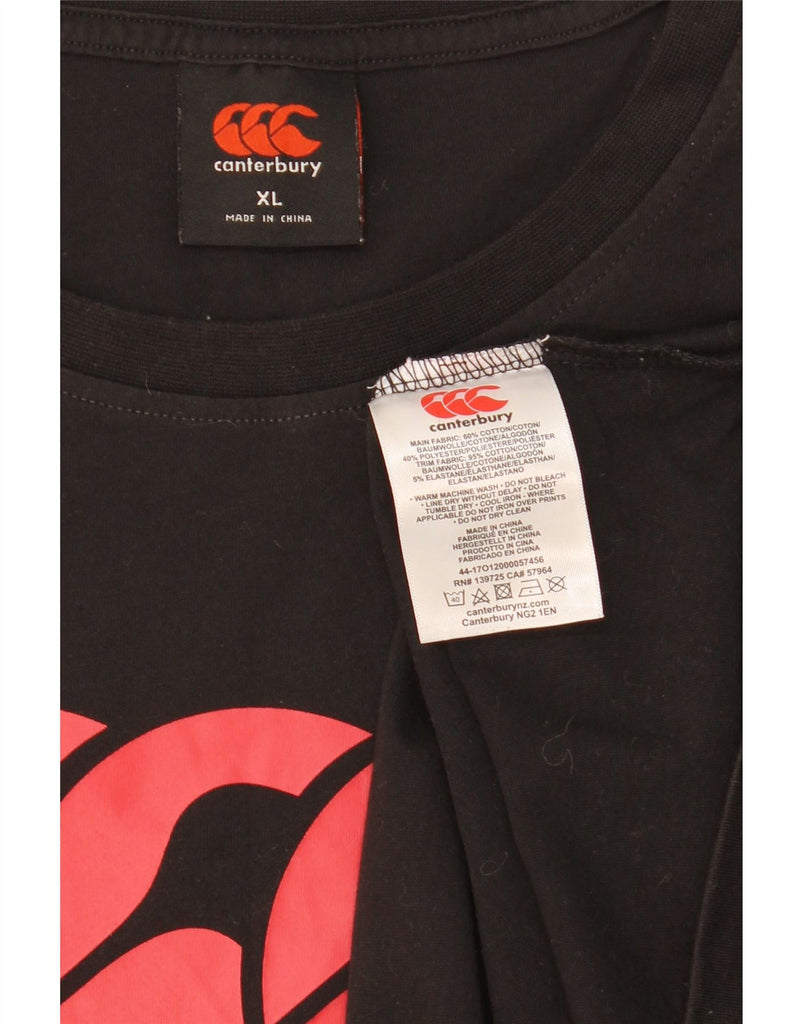 - AI Description: This Canterbury mens Graphic T-Shirt Top is crafted from a comfortable black blended fabric offering stretch and breathability. It features a classic round neck and short sleeves. The regular fit ensures ease of movement. A prominent logo graphic adds a distinctive sports style making it ideal for active wear or casual comfort.