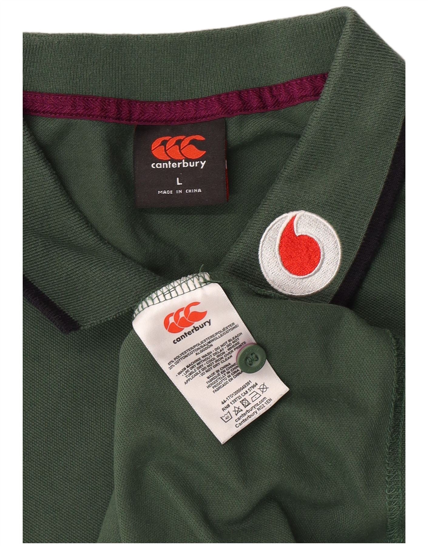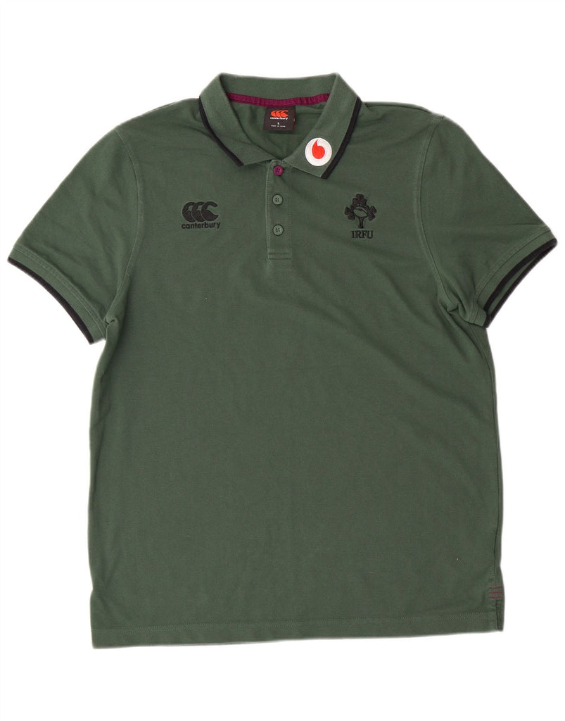 - AI Description: This Canterbury mens Rugby Polo Shirt is crafted from a breathable polyester and cotton blend fabric. It features a classic collared neckline and a button closure. Short sleeves and a regular fit ensure comfort and ease of movement. An embroidered graphic detail proudly displays the Ireland team accent. This sports style polo offers both comfort and a classic look for rugby enthusiasts.