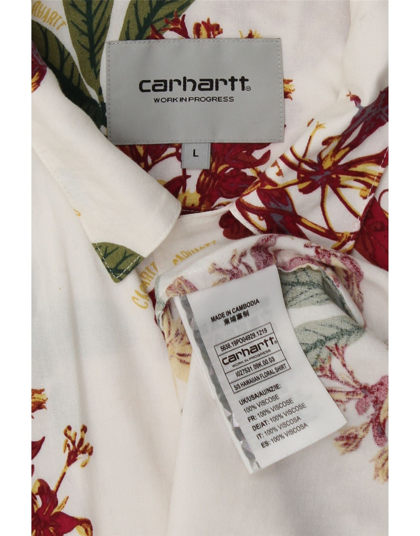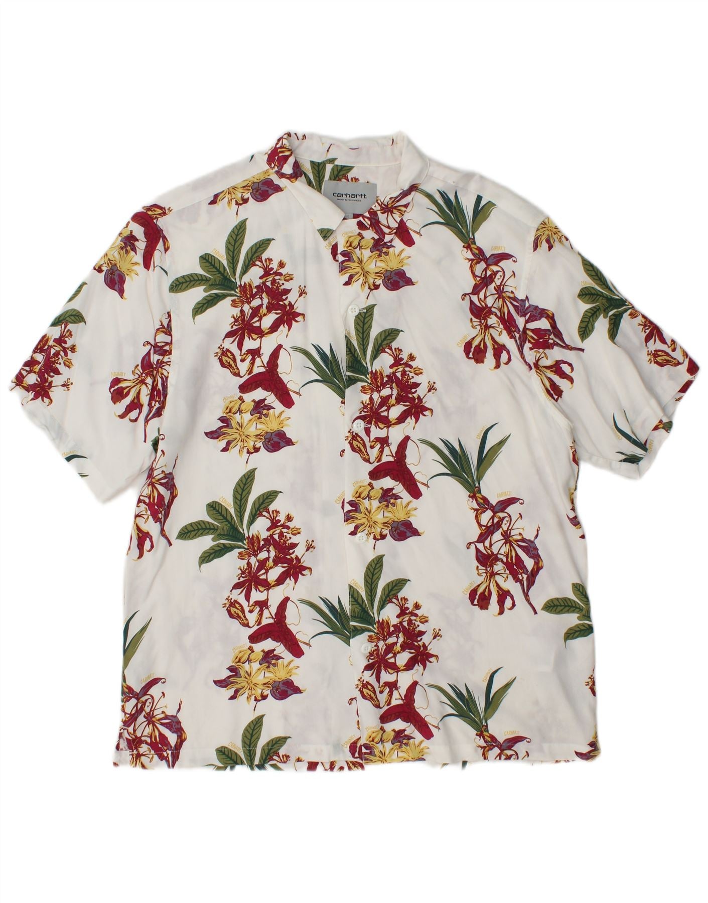 CARHARTT Ανδρικό πουκάμισο Χαβάης με κοντό μανίκι μεγάλο λευκό φλοράλ βισκόζη
