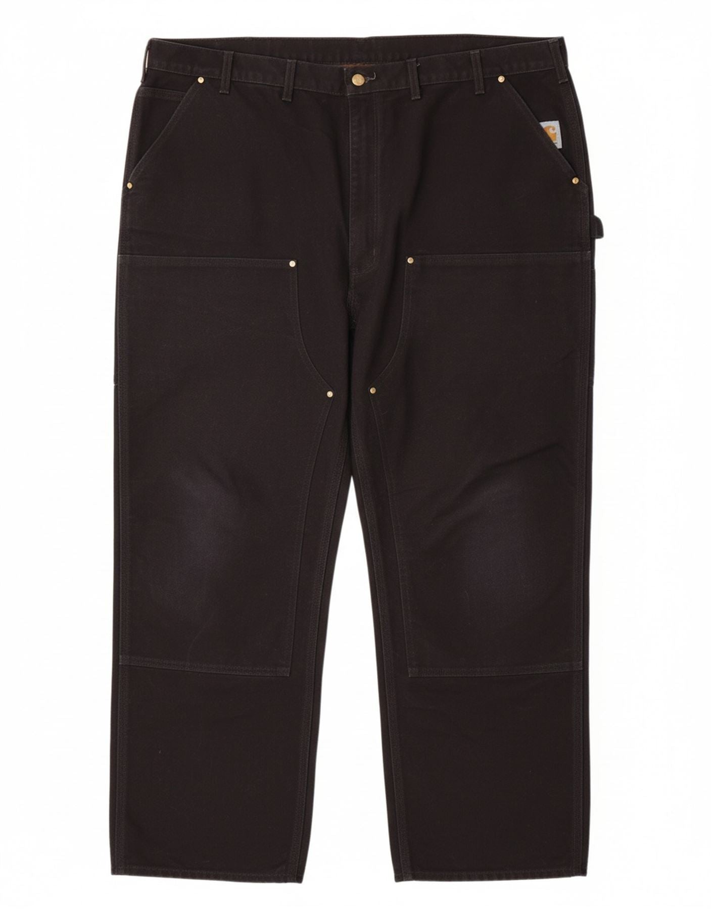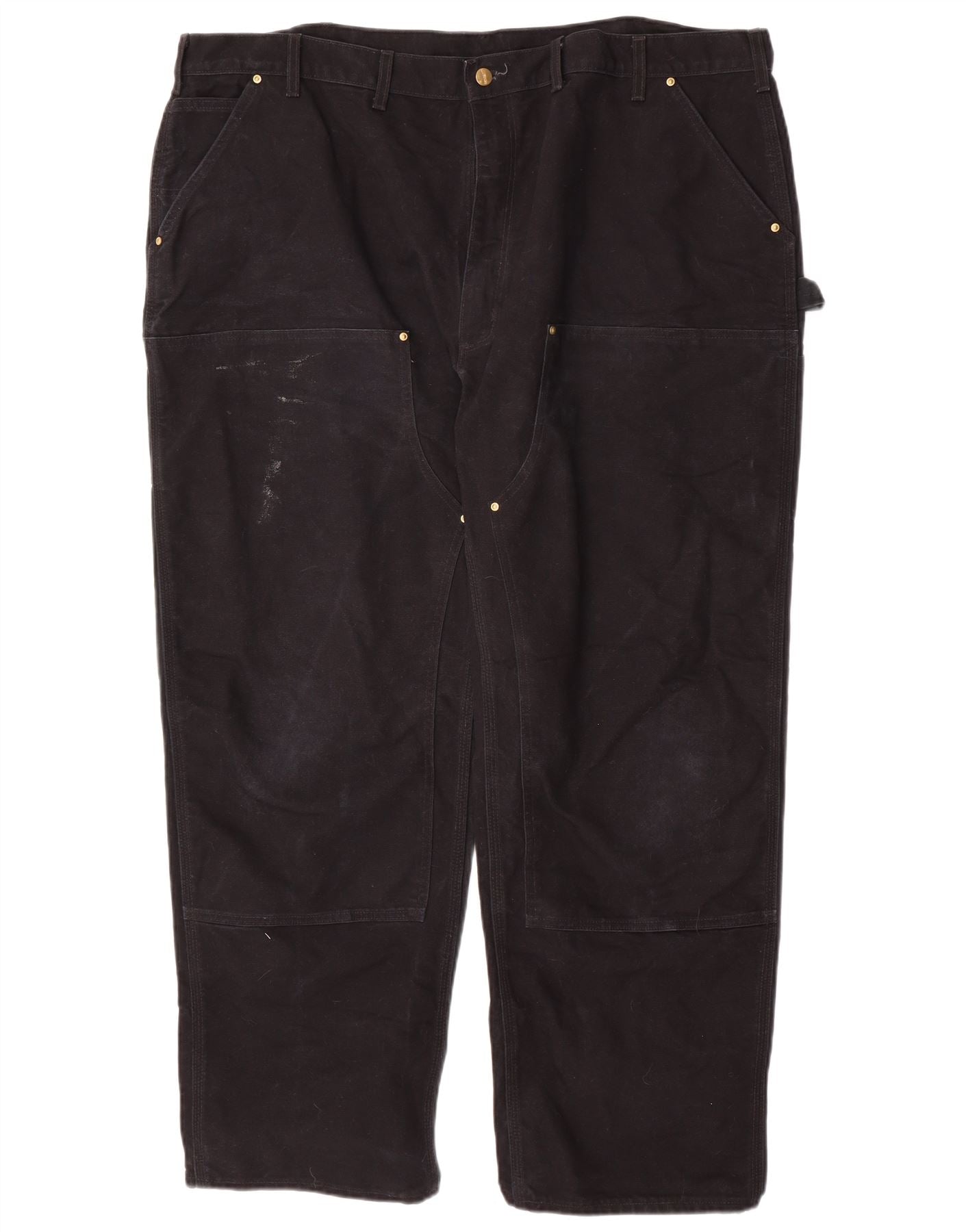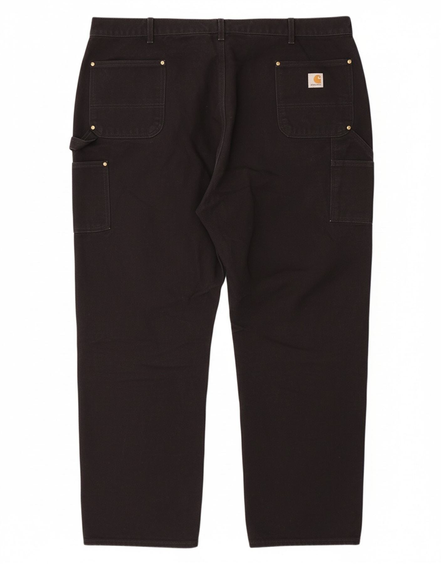 - AI Description: This Carhartt mens Cargo Trousers are crafted from heavyweight black 100 percent cotton canvas. They feature a relaxed, loose fit for ultimate comfort and movement. The design includes multiple practical pockets, ideal for everyday utility. A sturdy button closure secures the waist. Studded accents add a robust, classic detail. These trousers are built for durability and provide lasting wear, embodying a timeless, rugged style.