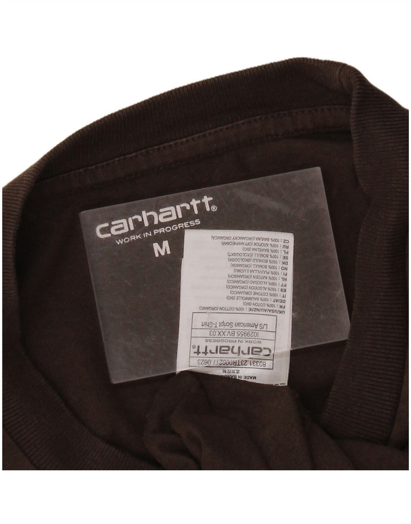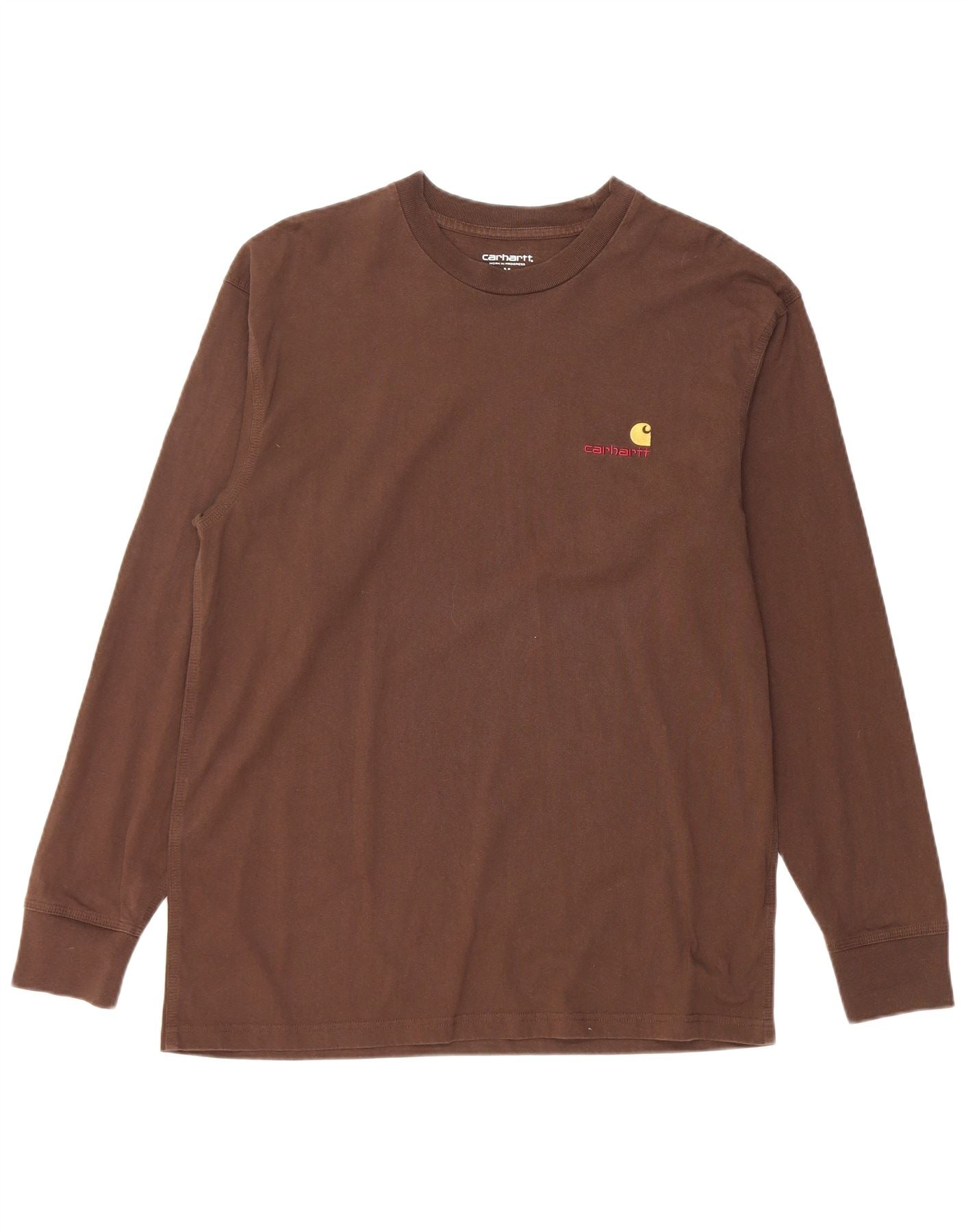 - AI Description: This Carhartt mens long sleeve T-shirt is crafted from soft 100 percent organic cotton jersey in a rich brown hue. It features a classic round neck and long sleeves. The regular fit ensures comfortable wear. A distinctive graphic logo accent is prominently displayed. This pullover style offers a timeless, casual look, perfect for everyday wear.