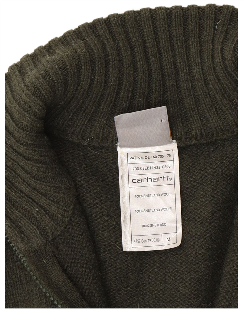 - AI Description: This Carhartt mens cardigan sweater is crafted from 100 percent Shetland wool, offering a warm, knit texture. It features a high mock neck and a full zip closure for versatile styling. Long sleeves finish with cuffed details. The regular fit ensures comfort and a classic silhouette. A subtle logo accent completes the design.