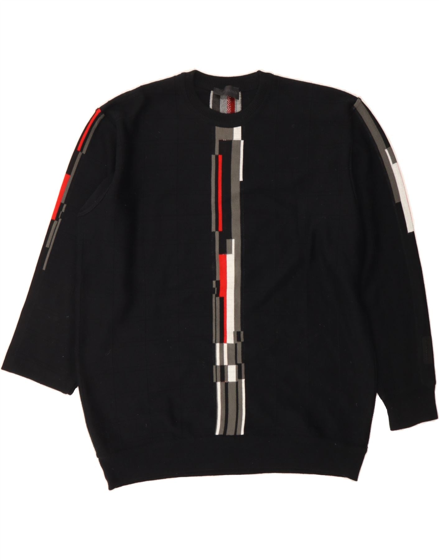 CARLO COLUCCI Mens Crew Neck Jumper Sweater IT 54 XL Black Striped Cotton