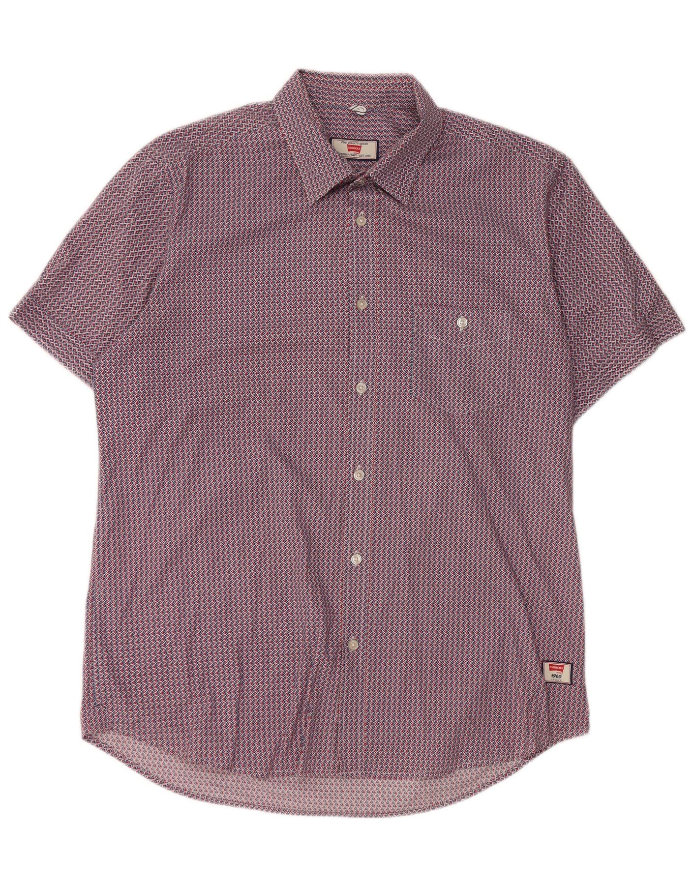 Home > Vintage ρούχα Carrera > Ανδρικά > Ανδρικό κοντομάνικο πουκάμισο Carrera με κανονική εφαρμογή, μεγάλο κόκκινο γεωμετρικό βαμβακερό