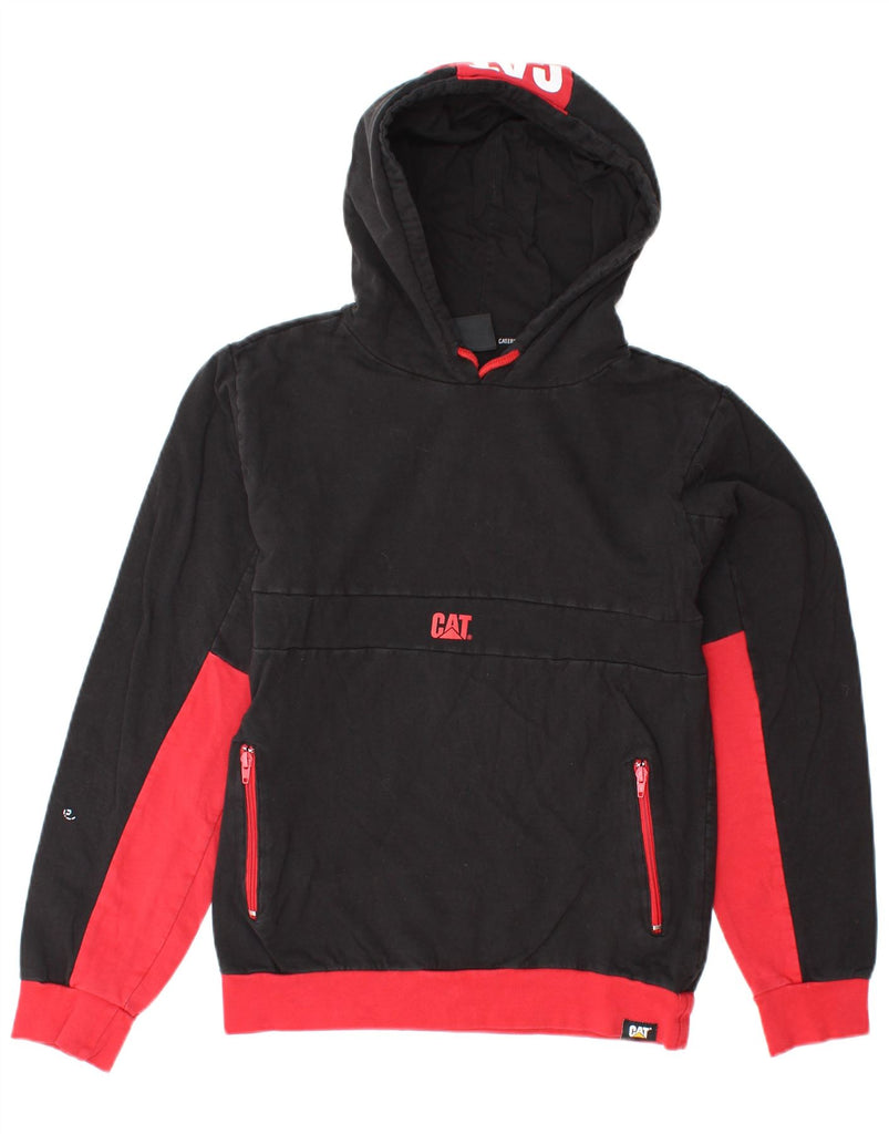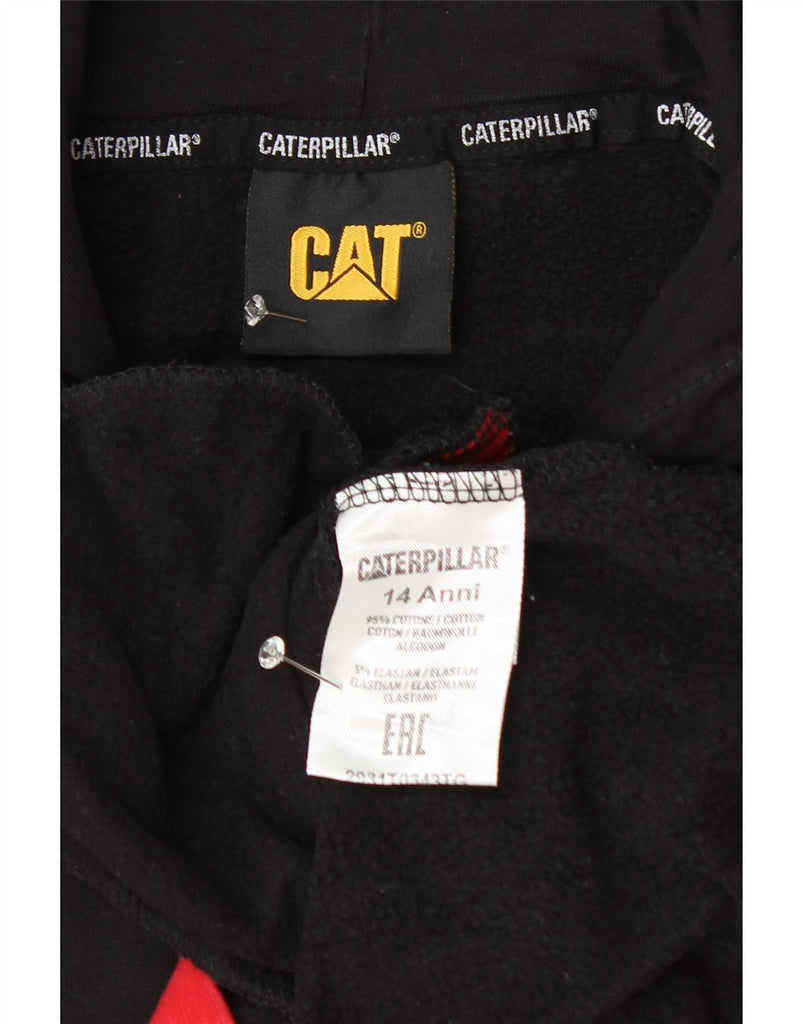 CATERPILLAR Boys Graphic Hoodie Jumper 13-14 Years Black Colourblock
