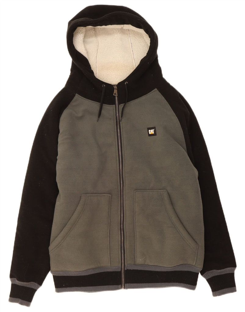 CATERPILLAR Mens Graphic Fleece Jacket UK 36 Small Black Colourblock