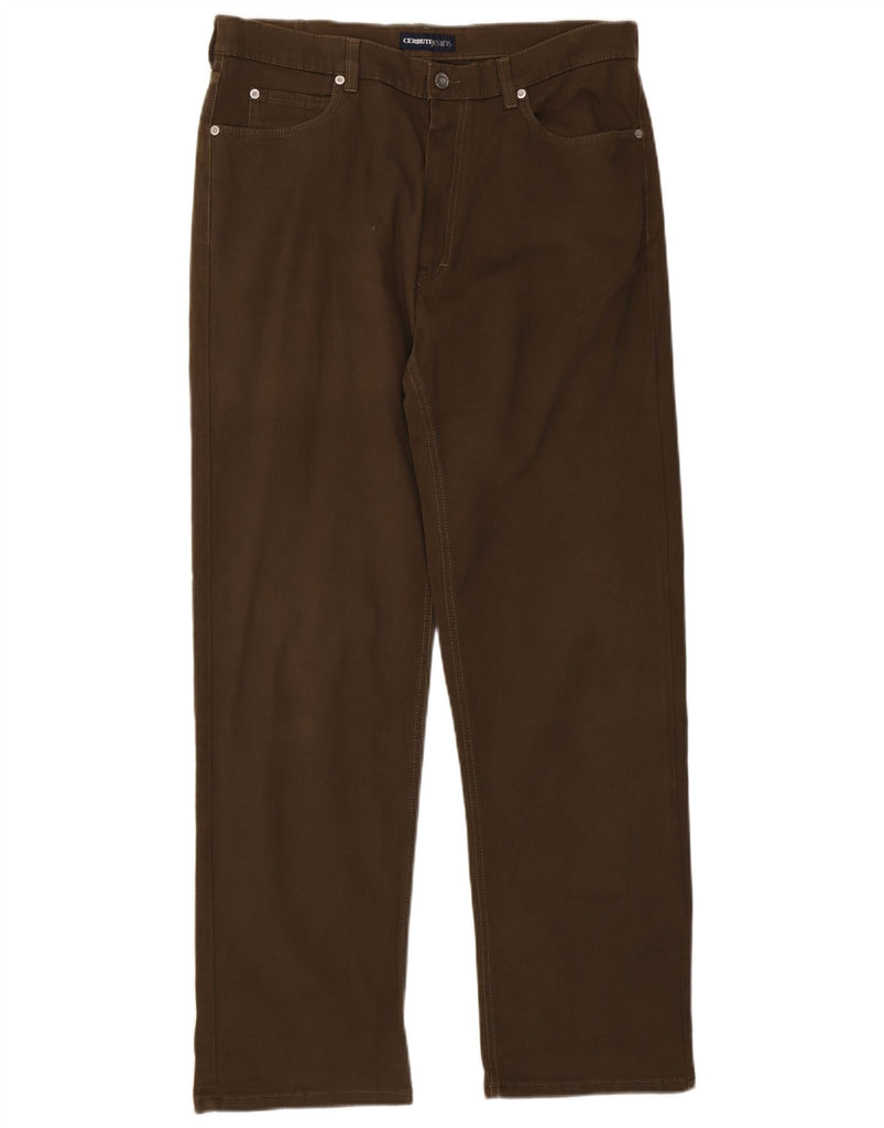 CERRUTI 1881 Mens Straight Casual Trousers W36 L32 Khaki Cotton