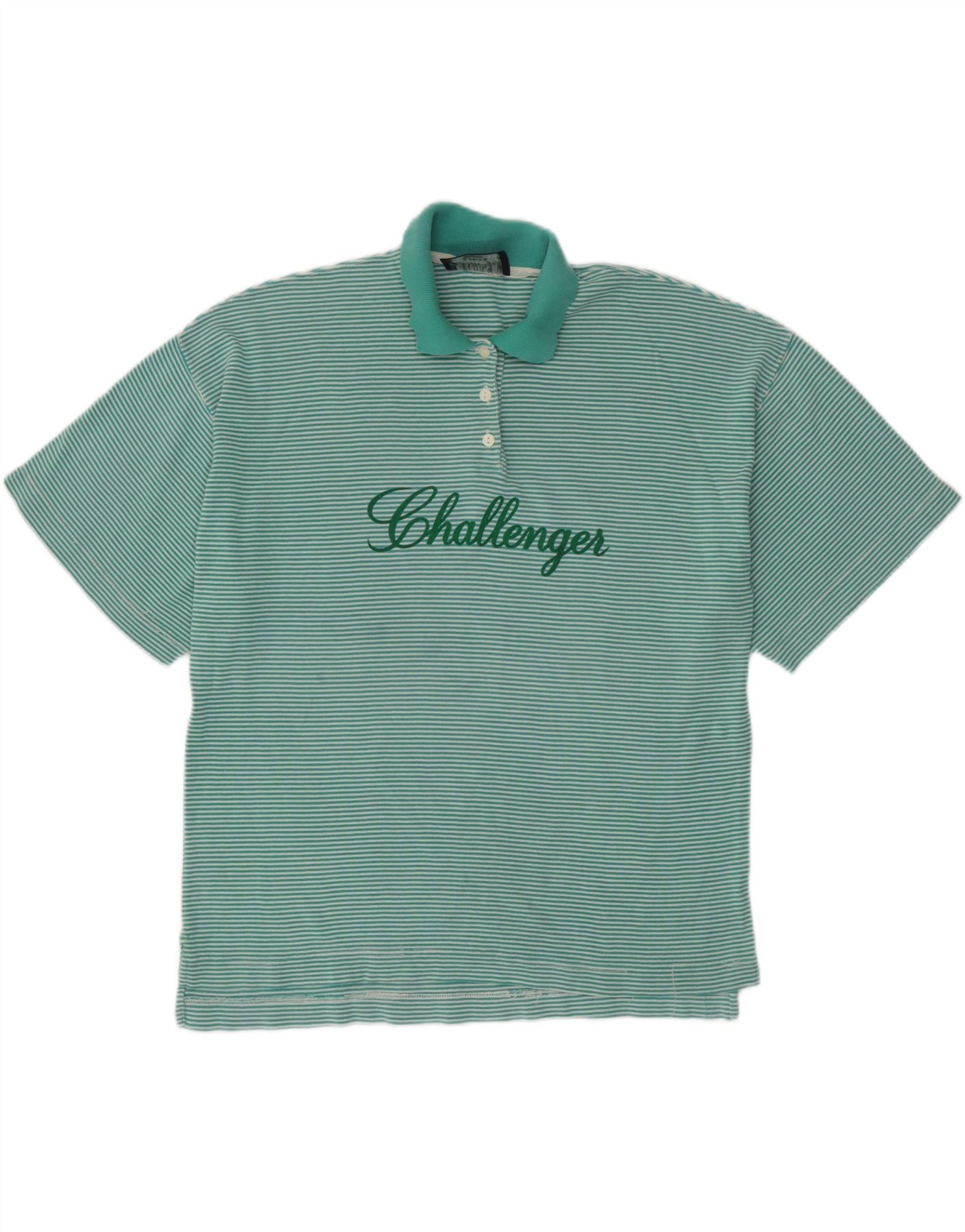 Γυναικείο μπλουζάκι πόλο CHALLENGER UK 14 μεσαίου τυρκουάζ ρίγες