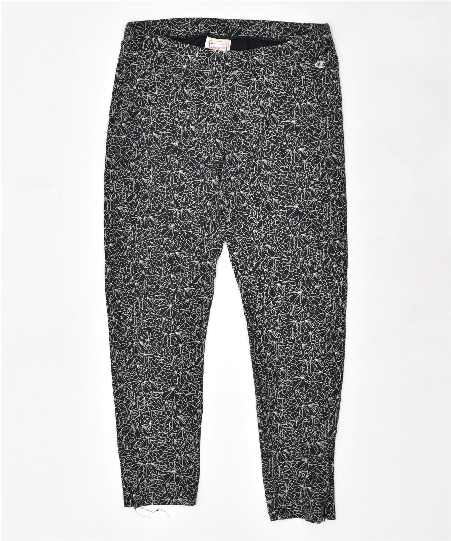 CHAMPION Womens Leggings Large Black Geometric | Vintage | Thrift | Second-Hand | Used Clothing | Messina Hembry