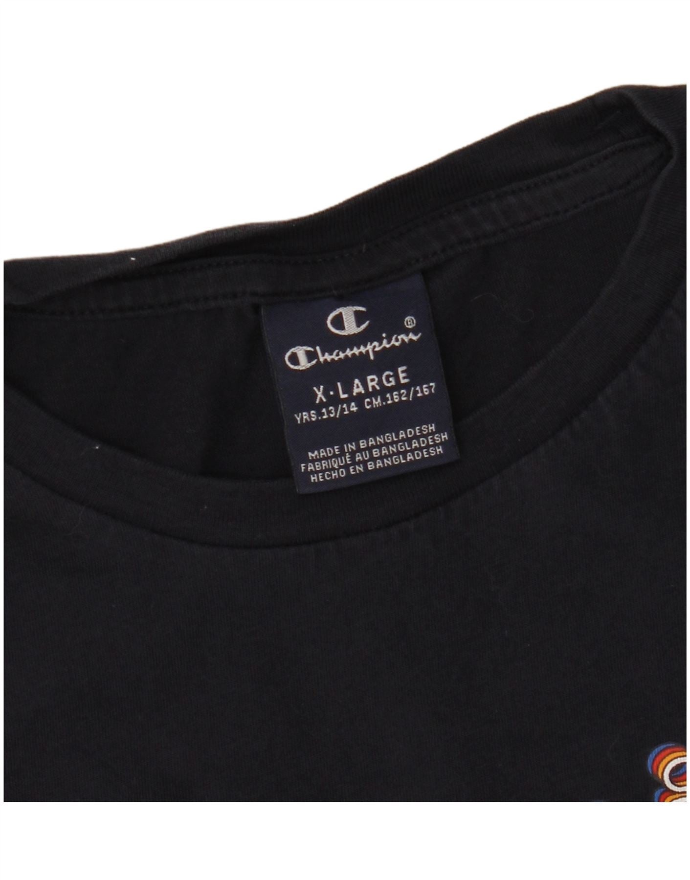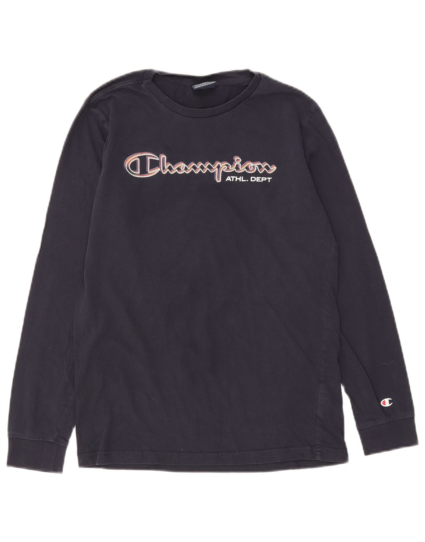 CHAMPION Boys Regular Fit Graphic Top Long Sleeve 13-14 Years XL Navy Blue