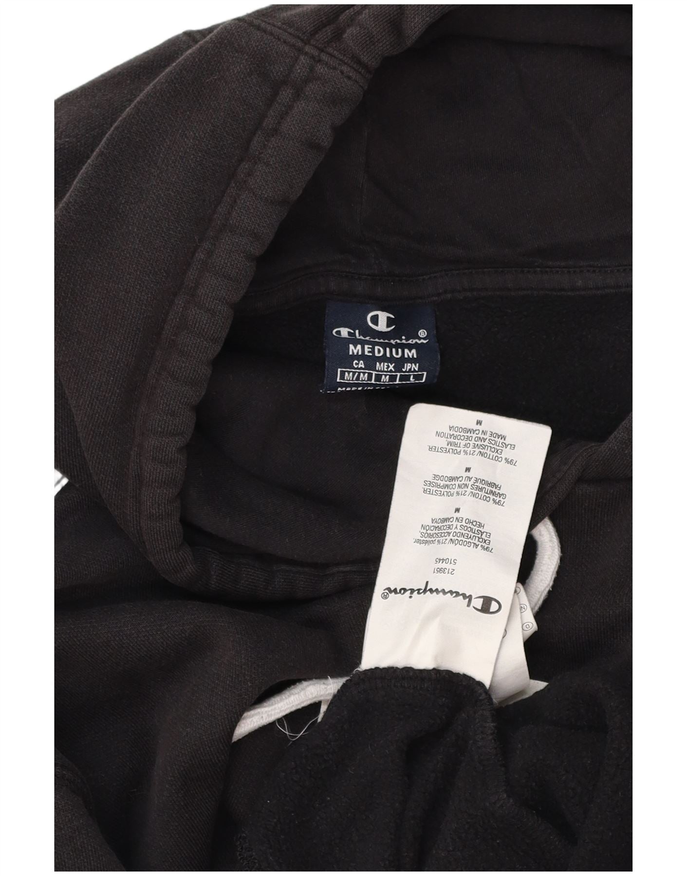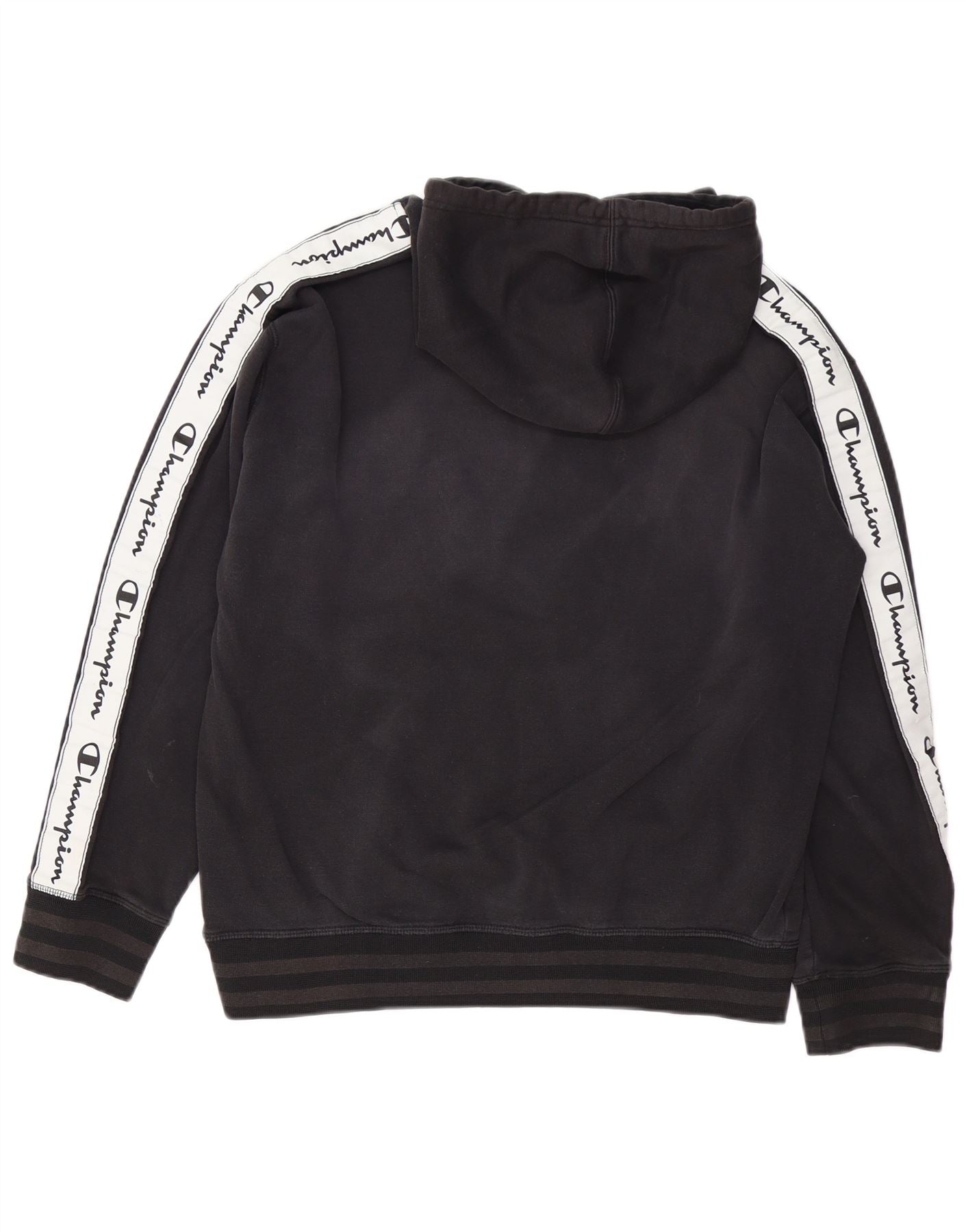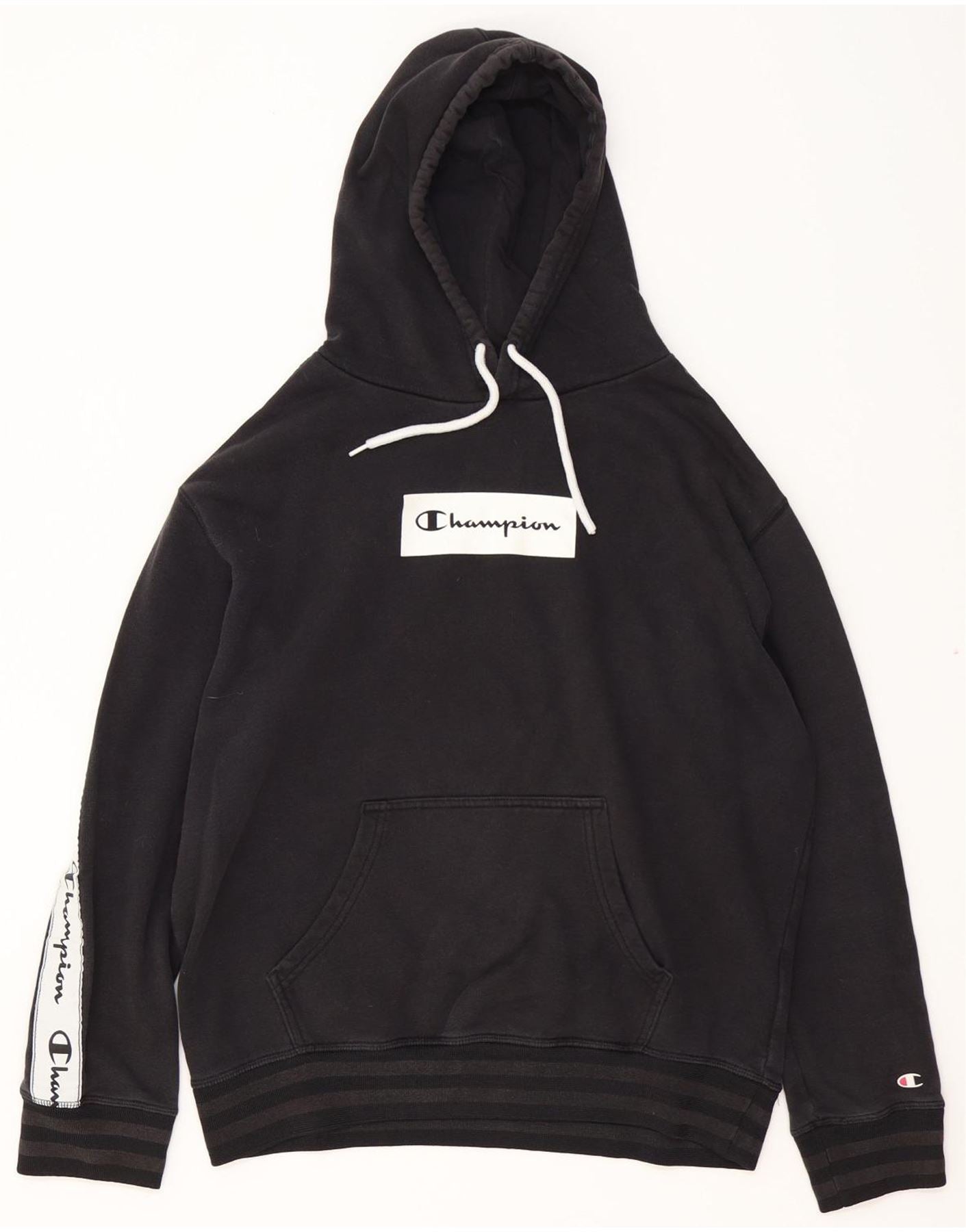 CHAMPION Mens Graphic Hoodie Jumper Medium Black Colourblock Cotton