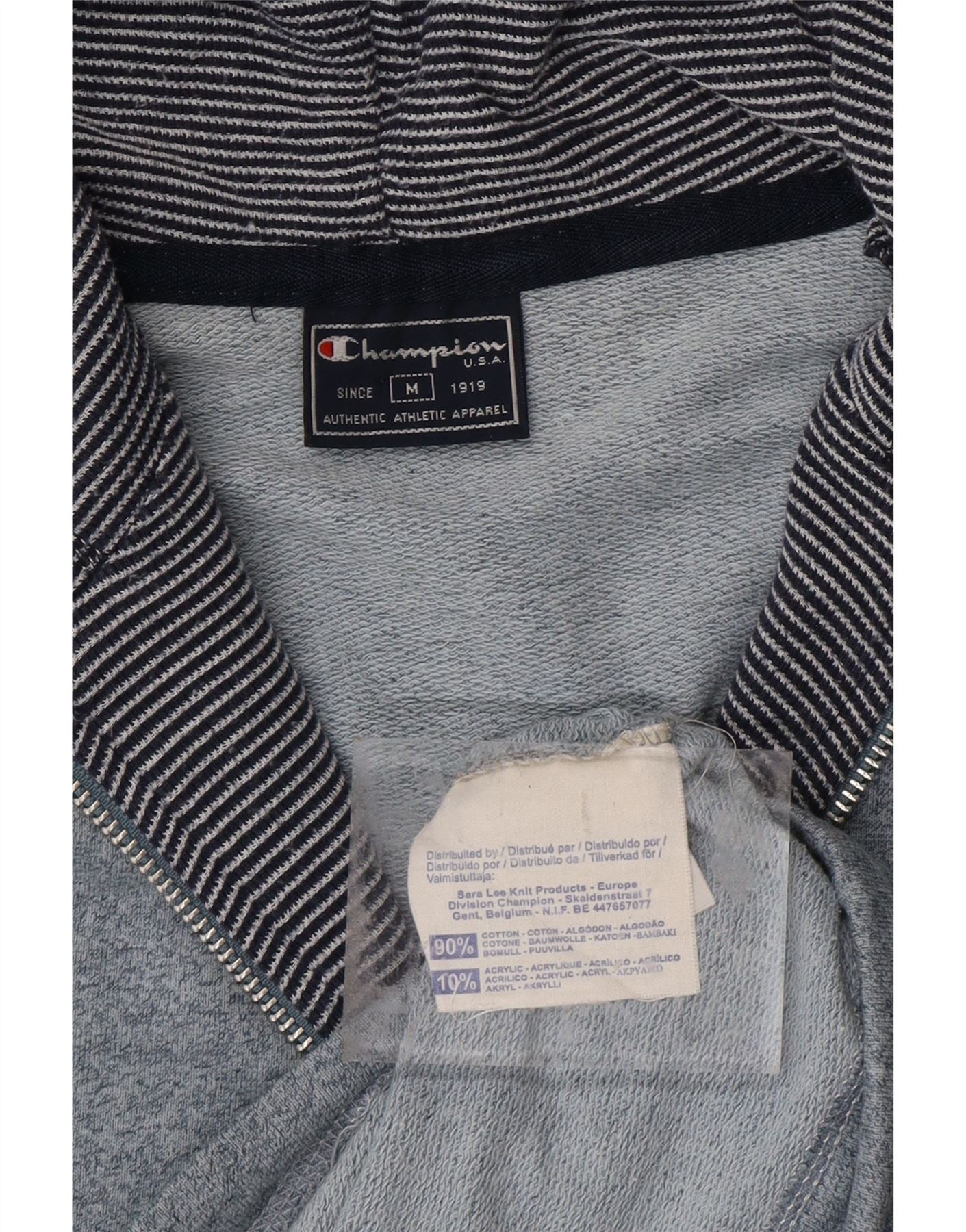 CHAMPION Γυναικείο πουλόβερ με κουκούλα με φερμουάρ UK 14 μεσαίο μπλε βαμβακερό