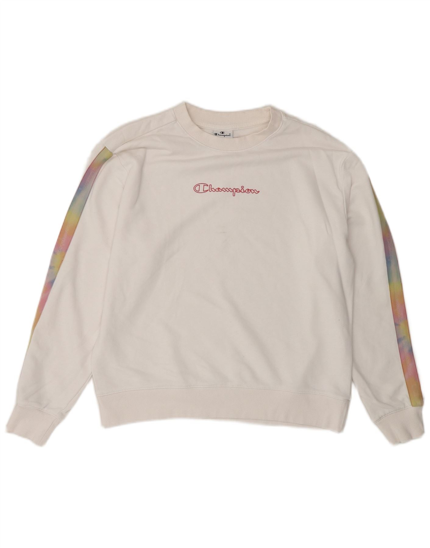 CHAMPION Womens Graphic Sweatshirt Jumper UK 10 Small White Colourblock