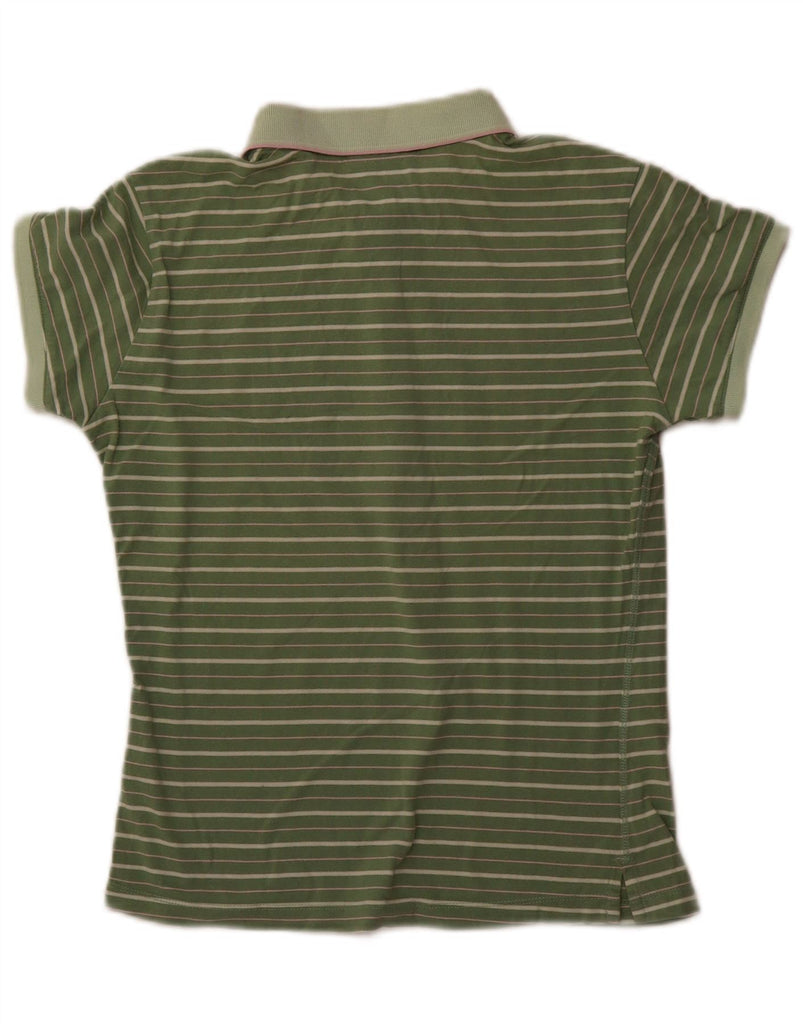 CHAMPION Womens Heritage Fit Polo Shirt UK 14 Large Green Striped Cotton