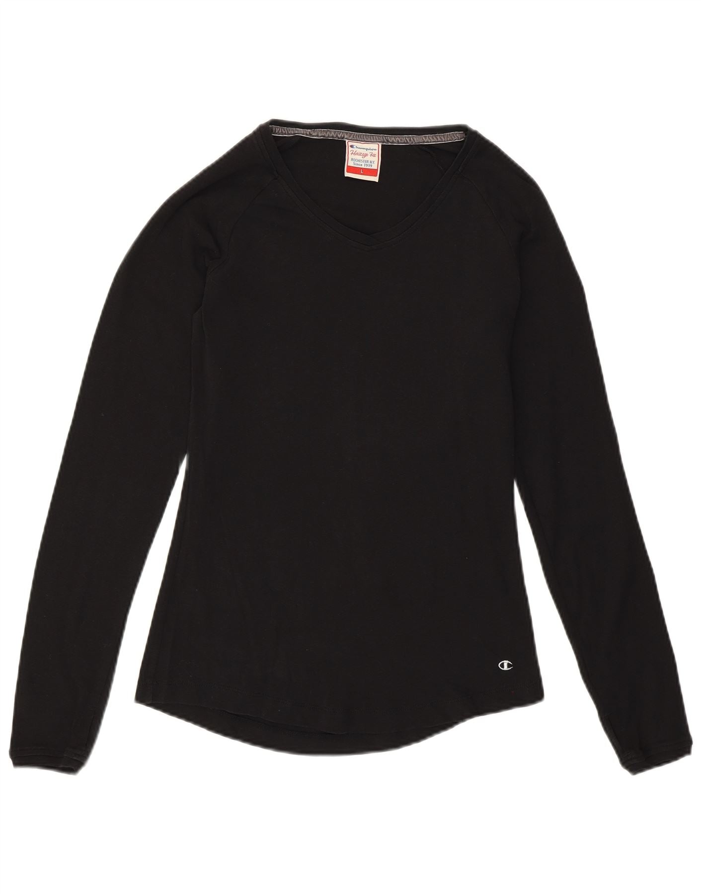 CHAMPION Γυναικεία Heritage Fit Top Μακρύ μανίκι UK 14 Large Μαύρο